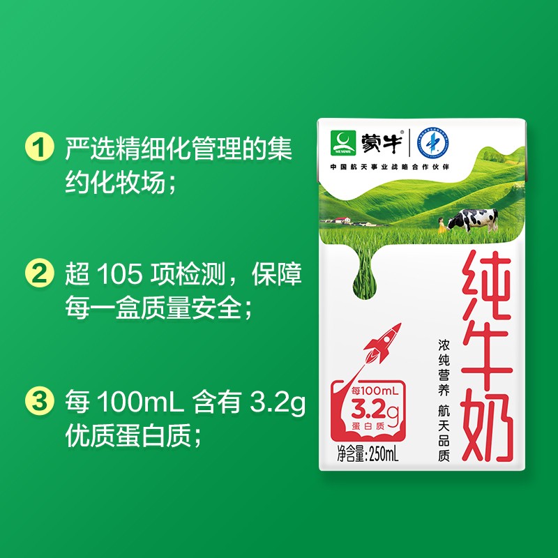 严选精细化管理的集约化牧场,3.2g优质蛋白质,经先进工艺脱气的无“膻”味牛奶。