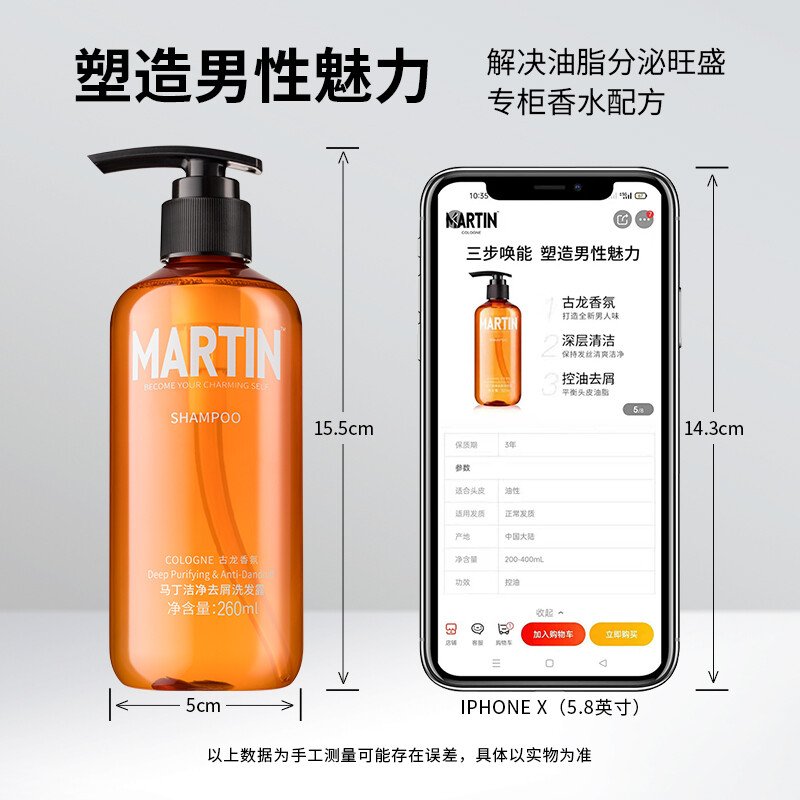 Rejoice 飘柔是宝洁旗下的超市开架个人洗护品牌,旗下产品包含美发护发产品和身体护理产品。这款马丁男士古龙香氛洗发水是飘柔旗下香氛系列的厂品之一。能够达到如同香水一般,在使用过程中分前中后调不同的香气。作为男士洗护产品,清洁力max,可以吸附头皮上的灰尘污垢,从而抑制头屑产生,、清新的古龙水味闻起来就让人心情愉悦,温和成分,不伤害头发~
