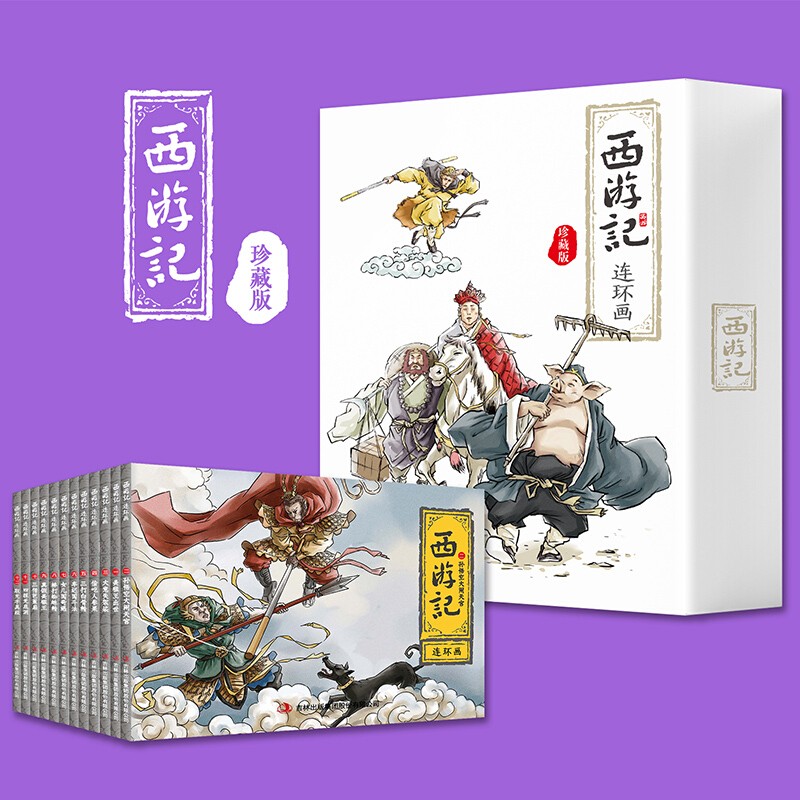 《西游记》是中国神魔小说的经典之作,达到了古代长篇浪漫主义小说的巅峰,全书主要描写了孙悟空出世及大闹天宫后,依次遇见了唐僧、白龙马、猪八戒和沙僧,西行取经,一路上历经艰险、降妖伏魔,经历了九九八十一难,终于到达西天见到如来佛祖,最终五圣成真的故事。《西游记》自问世以来在民间广为流传,各式各样的版本层出不穷,此次我们将原著精心编选为12册,配以近干幅精美的线描插图,既保留了原著的精华,又力争在传统阅读方式的基础上开创全新的精准、便携式阅读,让人们重温“小人书”的美好。