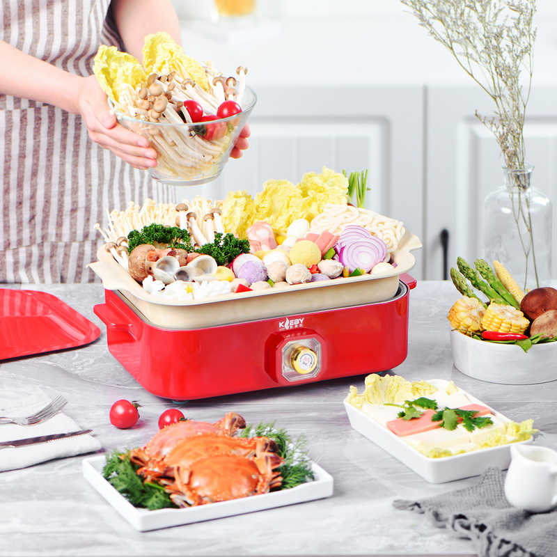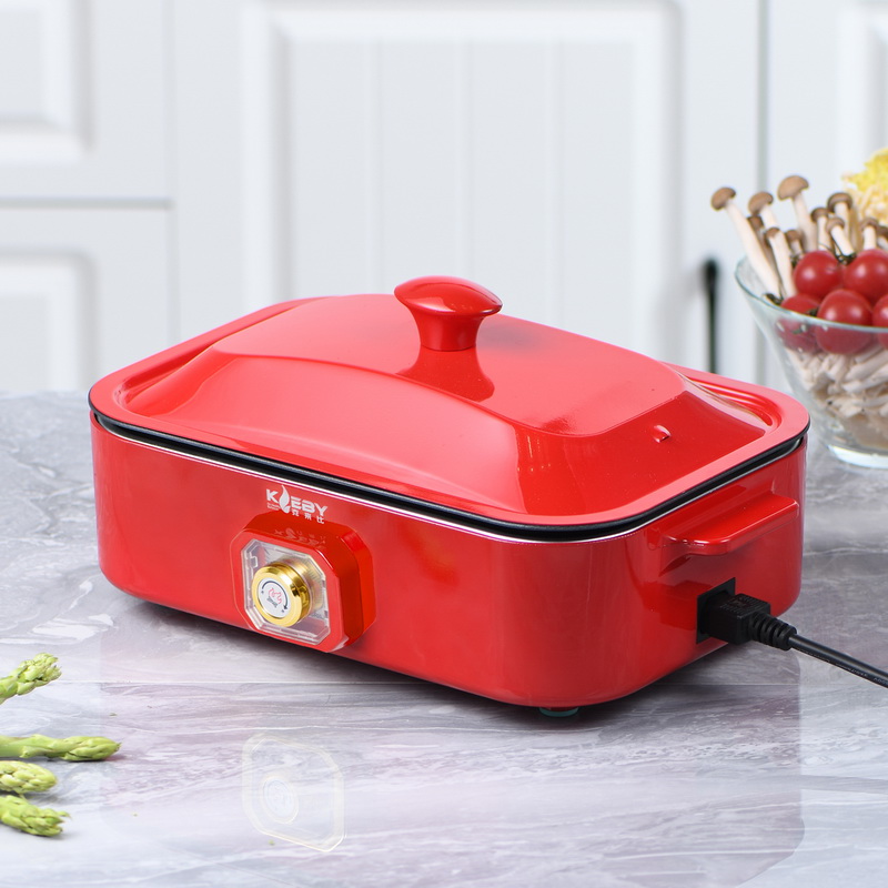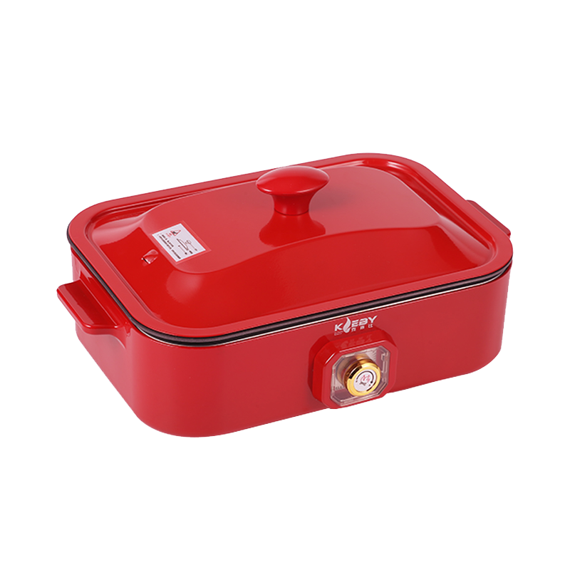 KLEBY 克来比 KLB 9082 多功能电煮锅 红色标配。锅盘可分离 一冲即净 烤盘和深锅 可直接用水龙头冲洗。少烟易清洗 不粘涂层 不粘涂层,耐用不易脱落。