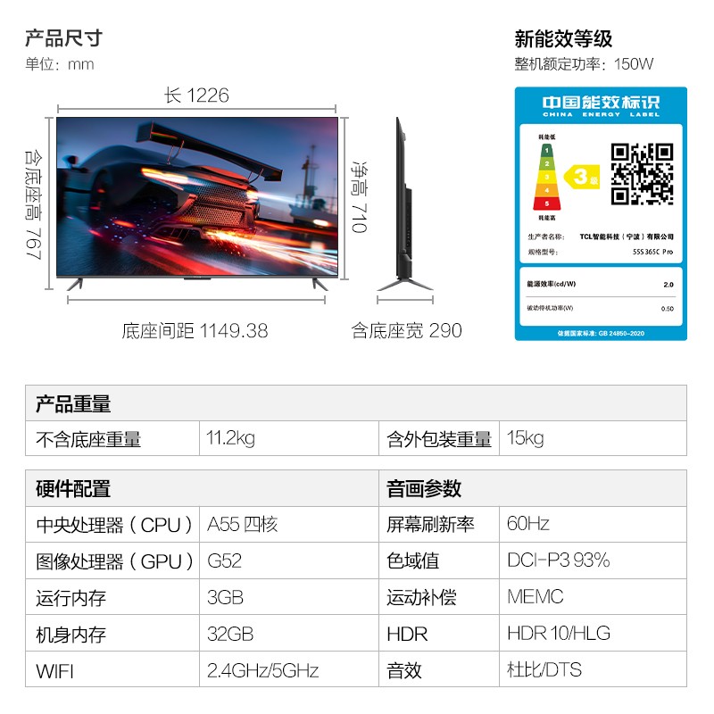 雷鸟 鹏6SE系列 S365C 液晶电视,内置游戏模式,开启后支持120Hz刷新率,以及VRR可变刷新率、ALLM自动低延迟,输入延迟低至7.4ms,游戏画面流畅更跟手。支持MEMC动态补偿,高度动态画面无拖影更清晰。实现90%的DCI-P3色域覆盖,以及D65色温调校,色彩表现更丰富更真实。搭载12nm的T982新品,支持8K视频解码,配合2GB内存+32GB闪存组合,流畅运行更多APP,支持HDR10视频和Dolby&DTS音频解码,本地视频播放兼容性更强。支持双频WiFi、USB3.0,观看4K高清视频加载更顺畅。