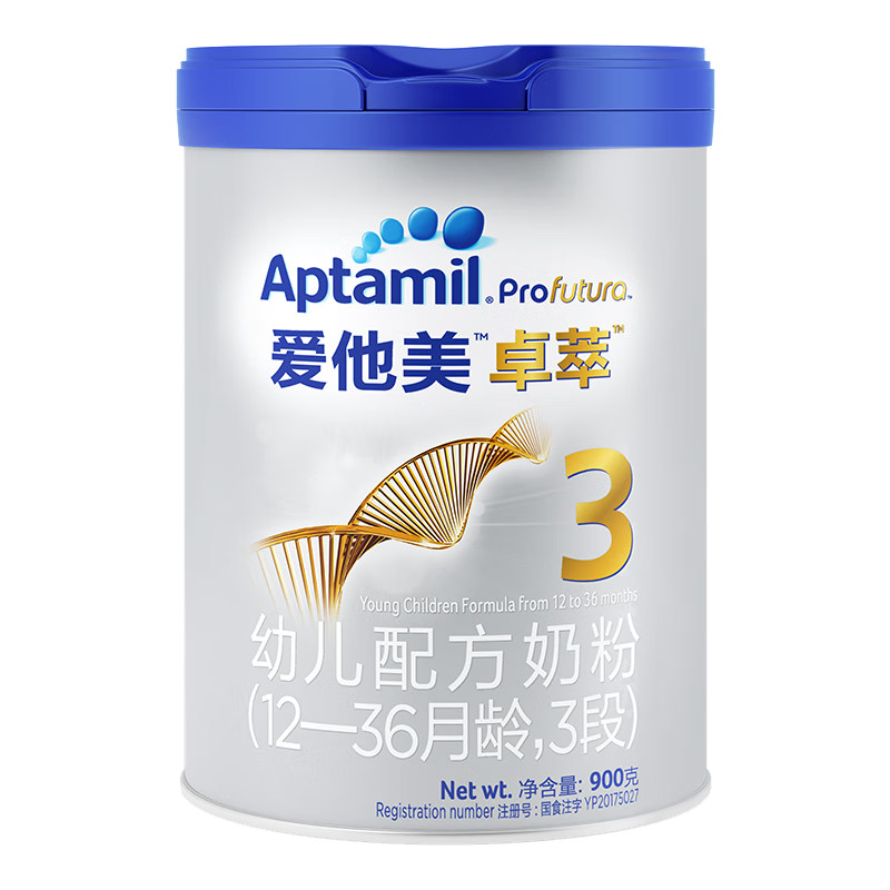 Aptamil爱他美奶粉品牌起源于德国,原是德国美乐宝集团创立品牌,后经过收购,目前已被达能集团收入麾下,是达能集团很具潜力的婴幼儿奶粉品牌,目前已经在德国、澳洲、英国、中国等多个国家地区畅销,是货真价实的国际知名品牌。爱他美奶粉版本众多,有国行版、香港版、澳洲版、英国版、德国版,国行版又分经典版和白金版,白金版就是卓萃。 爱他美卓萃系列婴儿配方奶粉 ,该系列下涵盖了从1段-4段婴儿奶粉,对比海外版蛋白质含量更高,更适合国内饮食结构。采用优质绿色生态无抗奶源,特别有助于婴幼儿消化吸收,其口味较淡,无异样香甜味道,宝宝喝了之后,不上火,身体结实,不会出现奶胖,给宝宝提供完整健康的全方位营养。 此系列奶粉还有两大优势成分,第一个就是NuMMOs模拟母乳低聚糖,能够帮助肠道菌群定植,带给宝宝更好的自护力,激发宝宝卓越的自护力。另一个就是奶粉乳脂,它是母乳或全脂牛奶中最重珍贵的一道营养,有优化的脂肪酸结构,有助于脂肪比较完整地被人体吸收,同时减少钙的流失,全方位帮助宝宝发育。卓萃系列奶粉的DHA含量也优于普通装,占%总脂肪酸0.38,普通装只占0.31,足量的DHA可以满足宝宝成长所需。