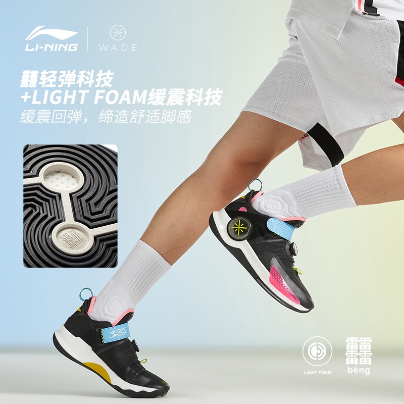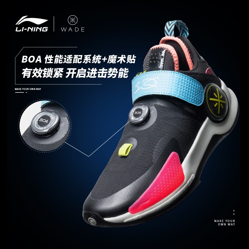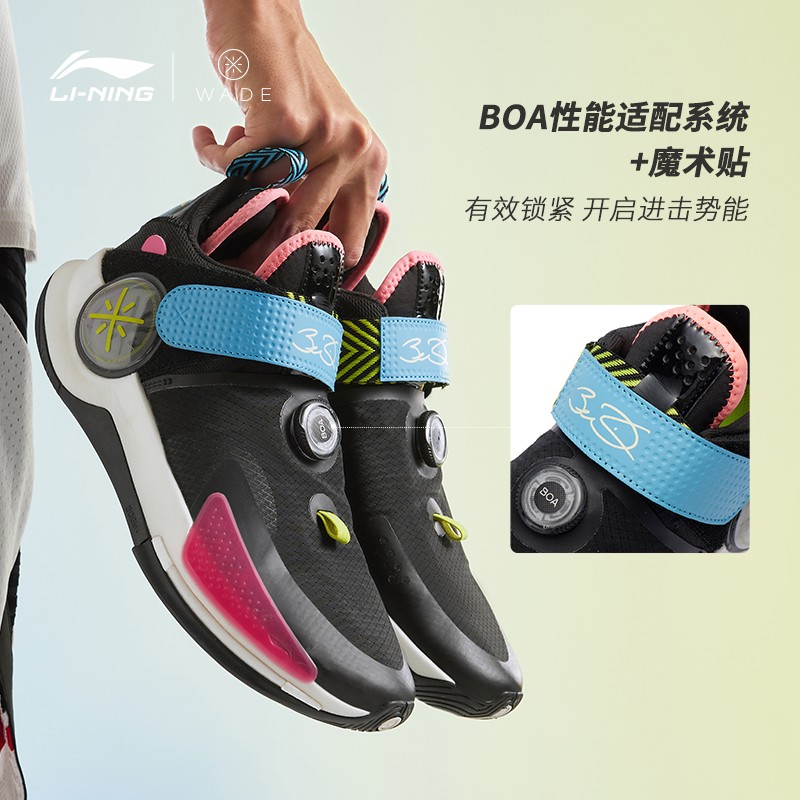韦德裂变7-V2,延续韦德之道正代设计语言,前掌内置䨻轻弹科技+LIGHT FOAM 缓震科技,缓震回弹,缔造舒适脚感。鞋面采用科技网布,提升球鞋透气性结合BOA旋钮鞋带系统及魔术贴设计,深纹路大底,从容应战。