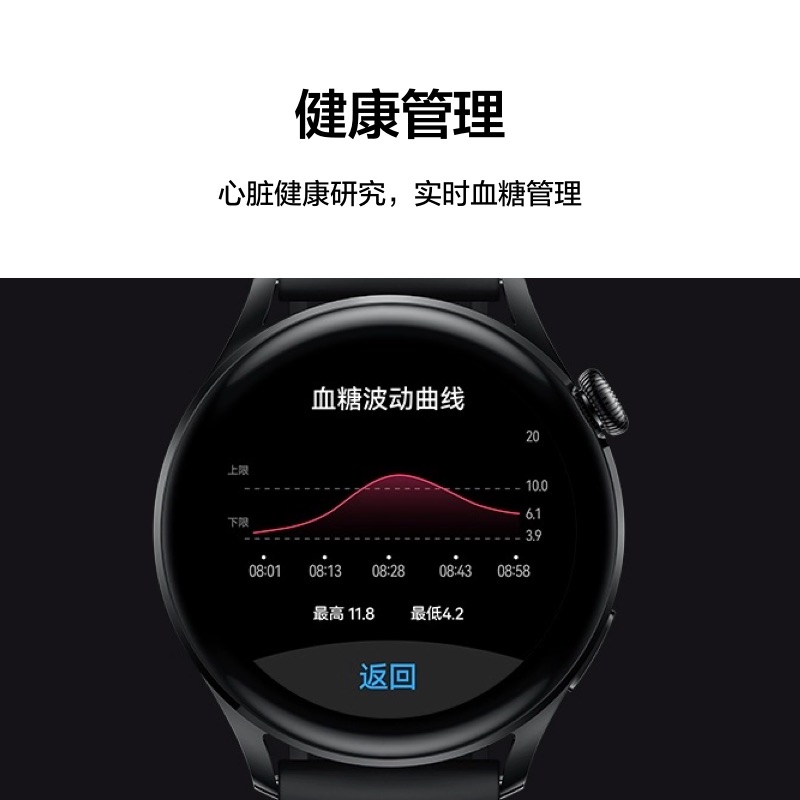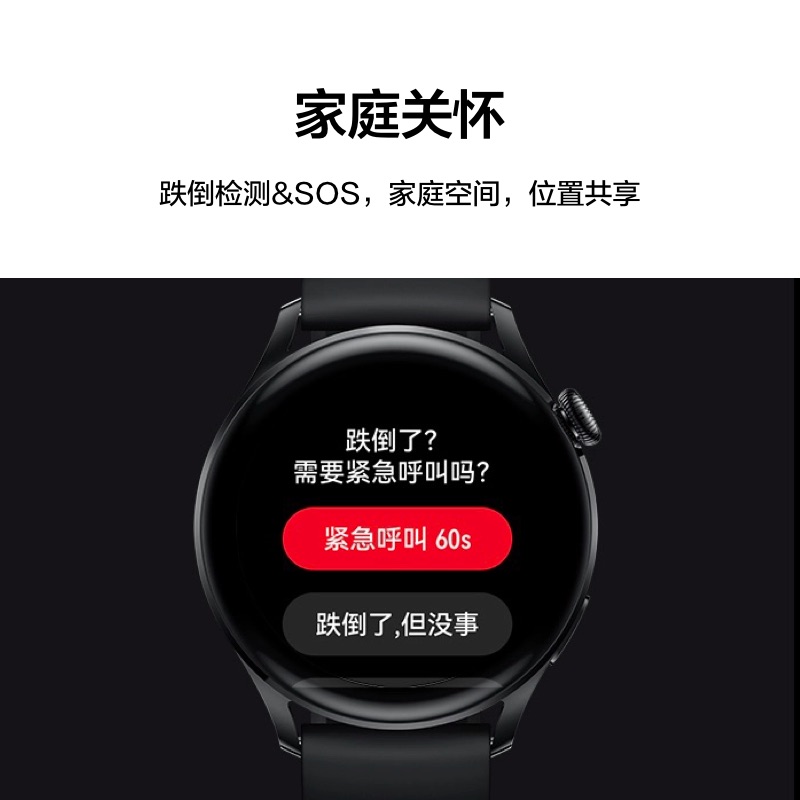 健康方面,华为Watch 3智能手表支持全天候看护血氧健康、实时血糖管理、智能心律监测、全天候健康监测,搭配内置的加速感应器与陀螺仪,可以实现跌倒紧急求助功能。