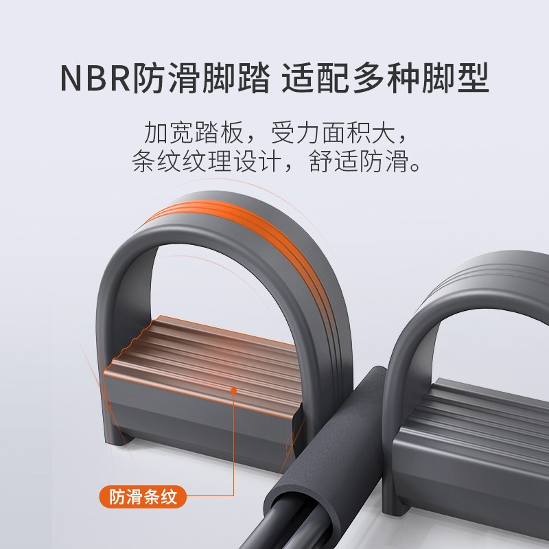 京东京造 脚蹬拉力器 LLQ-01 ,四股加粗乳胶管,天然乳胶,环保安全;加粗设计,拉力倍增回弹性强,延展性好,经久耐用。拉力约40磅,练就匀称肌肉线条。NBR防滑脚踏,适配多种脚型,加宽踏板,受力面积大,条纹纹理设计,舒适防滑。