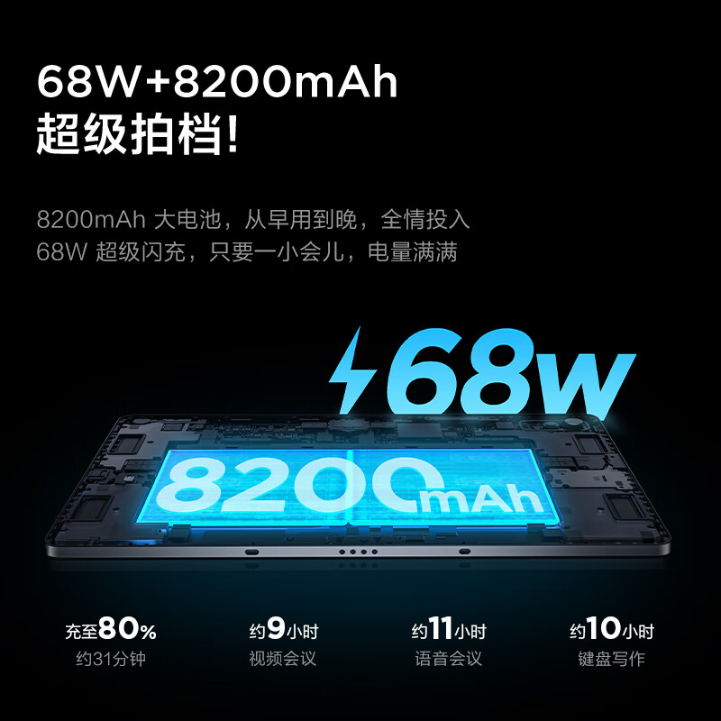 性能方面,采用的是高通骁龙870芯片,配备 8GB LPDDR5 内存和 128GB UFS 3.1 闪存,搭载8200mAh电池,骁龙版支持68W快充,配备4个JBL扬声器,支持杜比全景声,支持小新第二代触控笔。