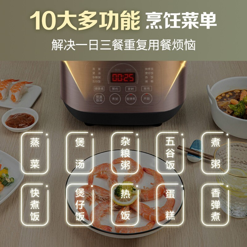 蒸煮焖炖煲,一键打开新“食”界,10大功能菜单,我们也可以做美食家,特设“杂粮粥”“五谷饭”功能,满足想吃杂粮的你。5层聚能耐用内胆,好胆才能做好饭。