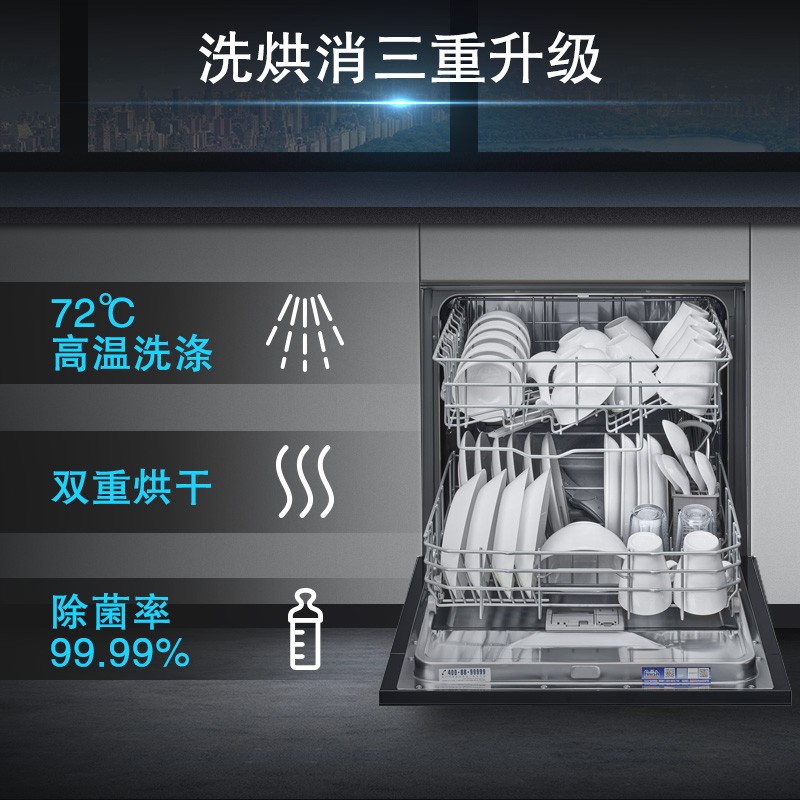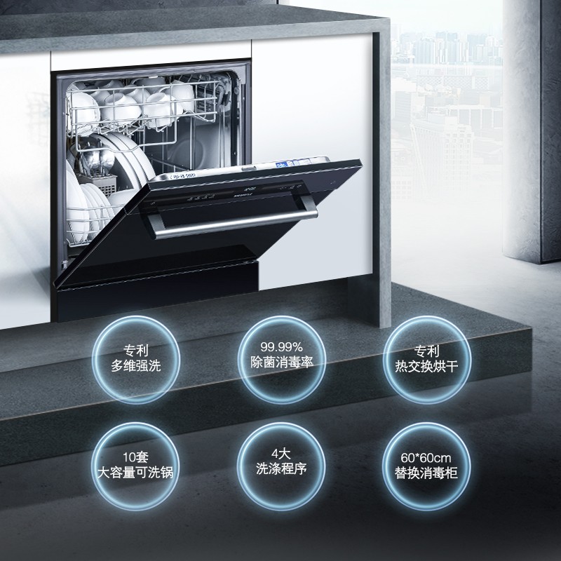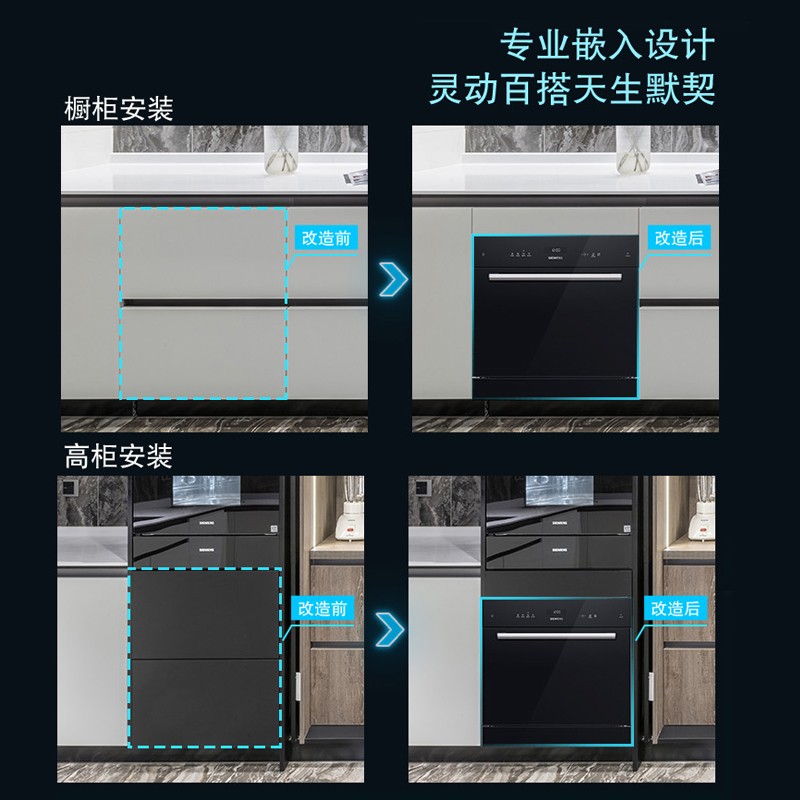 SIEMENS 西门子 SC454B22AC 嵌入式洗碗机 10套,2021年款紧凑型洗碗机,西班牙原装进口。72℃高温瓦解油污,水压最高23000Pa,360°全方位喷淋,软水系统,预防水垢。中式碗篮,主程序:日常洗、强力洗、节能洗、超快洗,增值程序:下层强洗、加强烘干,专利热交换+冷凝双重烘干。LED全触控屏,操控方便好清洁,安装尺寸(宽高深)595*595*500mm,小巧身形,安装空间不受限。