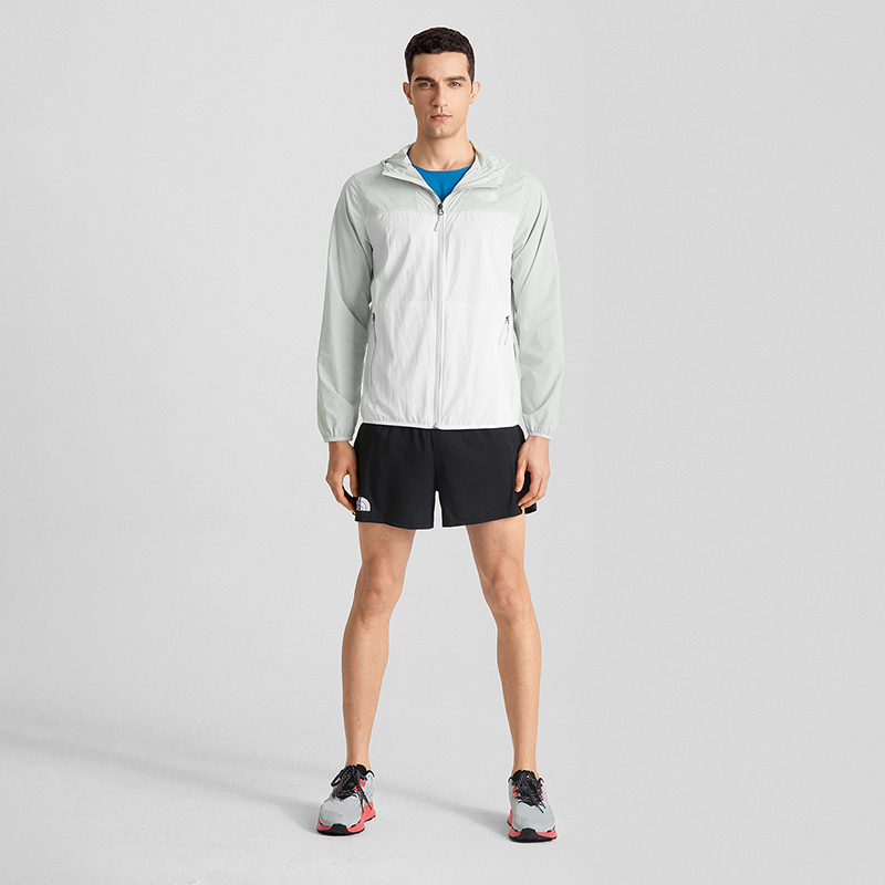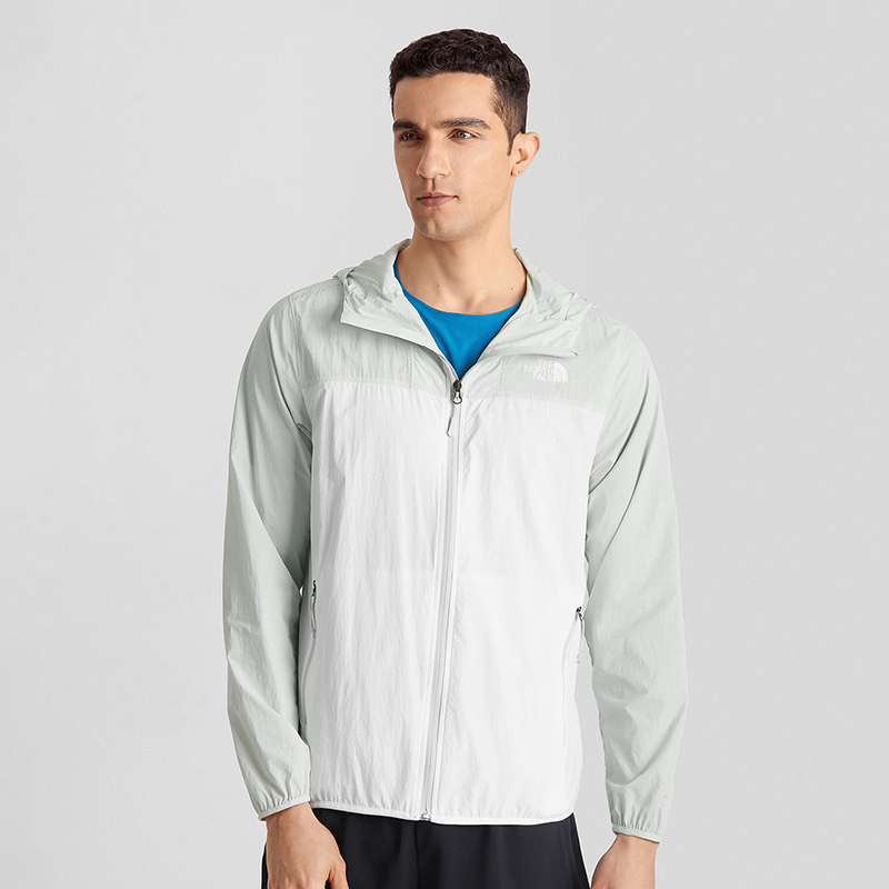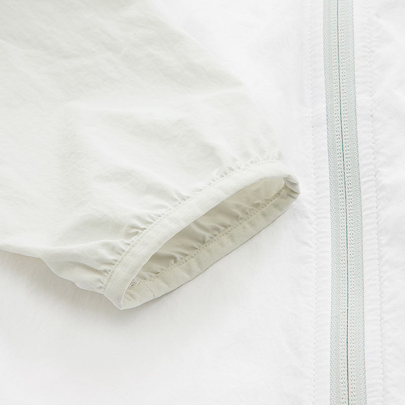 防风防泼水面料,一是具有很好的防风性能,二是有DWR防泼水处理。将水分阻截在面料表面,增强面料的透气性,并在加快其干燥速度的同时,能有效阻尘、阻油,保持服饰表面洁净。袖口及下摆均采用滚边收口设计,舒适灵活,运动自如。内置挡风片,灵活便捷。以反装拉链灵活开合,便捷收纳。左侧插手袋还可做一体式打包袋,可将衣服折叠打包塞入口袋内,轻巧便携。