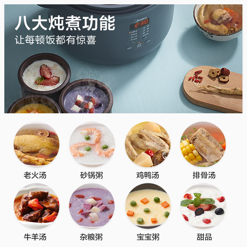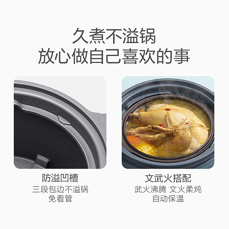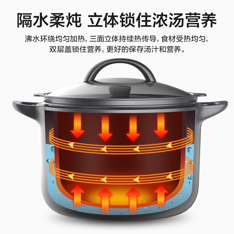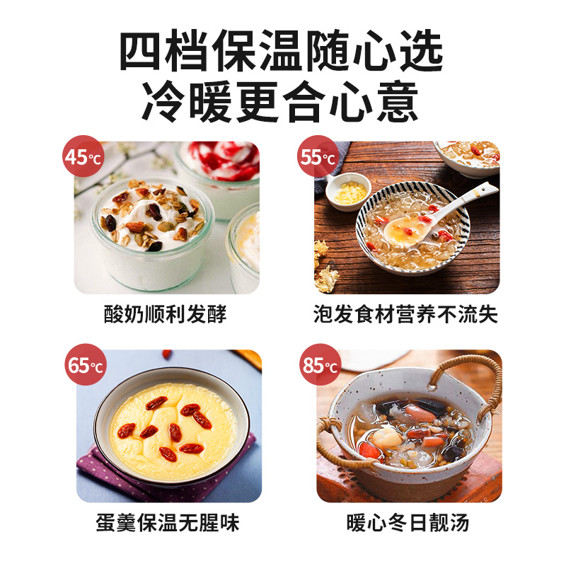 隔水柔炖,有爱的轻养食光。4档保温,多容量炖盅,内胆防烫支架,加厚材质,耐用耐高温, 无需手套或湿布直取高温内胆,稳拿稳放不烫手, 懂你想尝一口鲜汤的迫切。