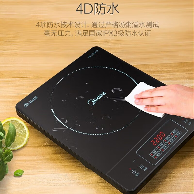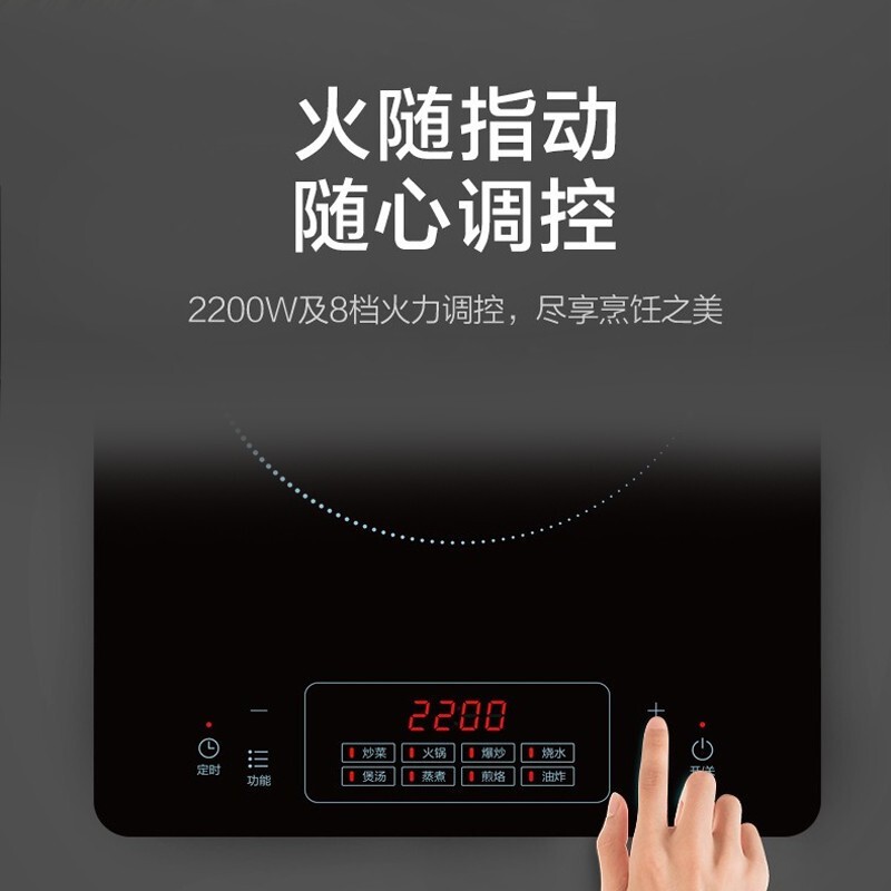 Midea 美的 MC-CL22Q1-405J 电磁炉,聚能双层线圈盘,加热快速均匀,升级2200W大火力,8档火力调控,文火、武火都能胜任。0-3小时定时,哑光蓝盾微晶玻璃面板,耐高温、耐冲击,4D防水设计,多重安全防护,变频调速风机。