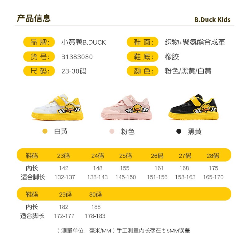 当前的位置: 首页 > 今日值得买 > B.Duck小黄鸭童鞋儿童运动鞋秋季新款时尚休闲鞋男女童百搭板鞋潮 粉色 24码内长约148mm