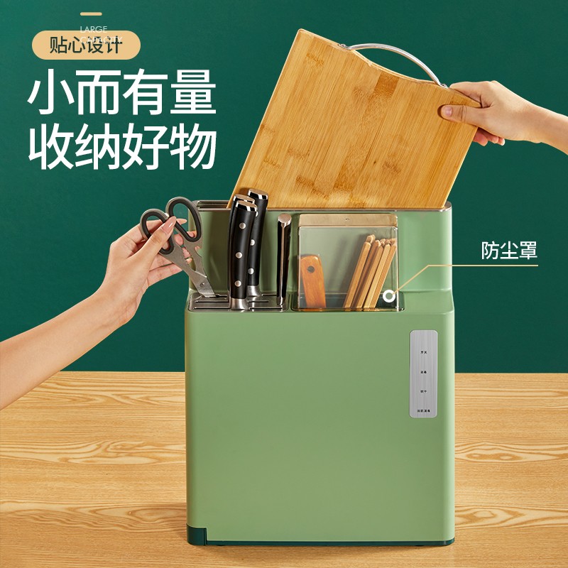 采用三种高效杀菌方式组合除菌,包裹砧板和刀具,可高效杀灭顽固细菌。360°热风循环系统,高效烘干水分,抑制细菌滋生,给家人更健康的照料。灵巧设计,高效分类处理,轻松满足各种料理需求。小而有量,收纳好物,收纳与除菌的多样选择,。不用担心发霉生菌,刀具,菜板,筷子随拿随用,使用前不需再二次清洗。