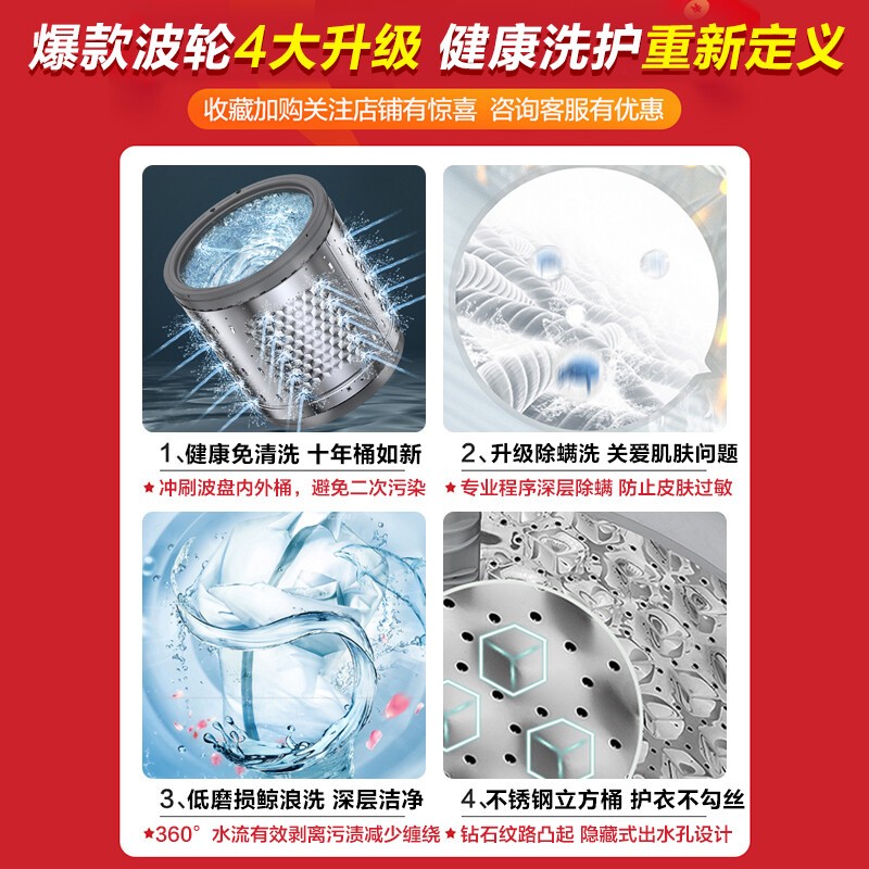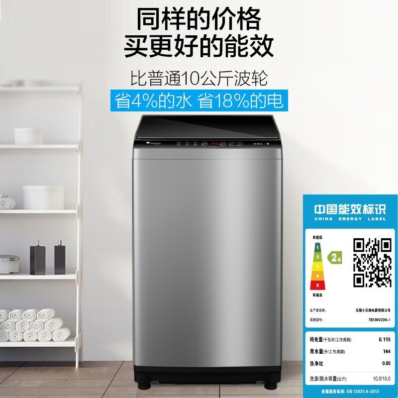 小天鹅TB100V23H 10公斤波轮洗衣机拥有智能免清洗功能,无需手动清洁内容,避免二次污染。还有深层除螨功能,可清除藏匿在衣物中的螨虫。支持15分钟快洗,省电省时节能。支持9小时预约,可以提前设置,洗衣更高效。这款洗衣机达到国家2级能效,洗净比0.8。