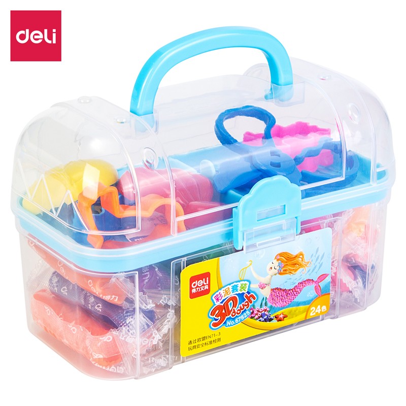 得力 DL-67825 24色黏土工具套装,每种颜色独立包装,色彩鲜艳,分量足,易保存,彩泥软硬适中,可塑性强。