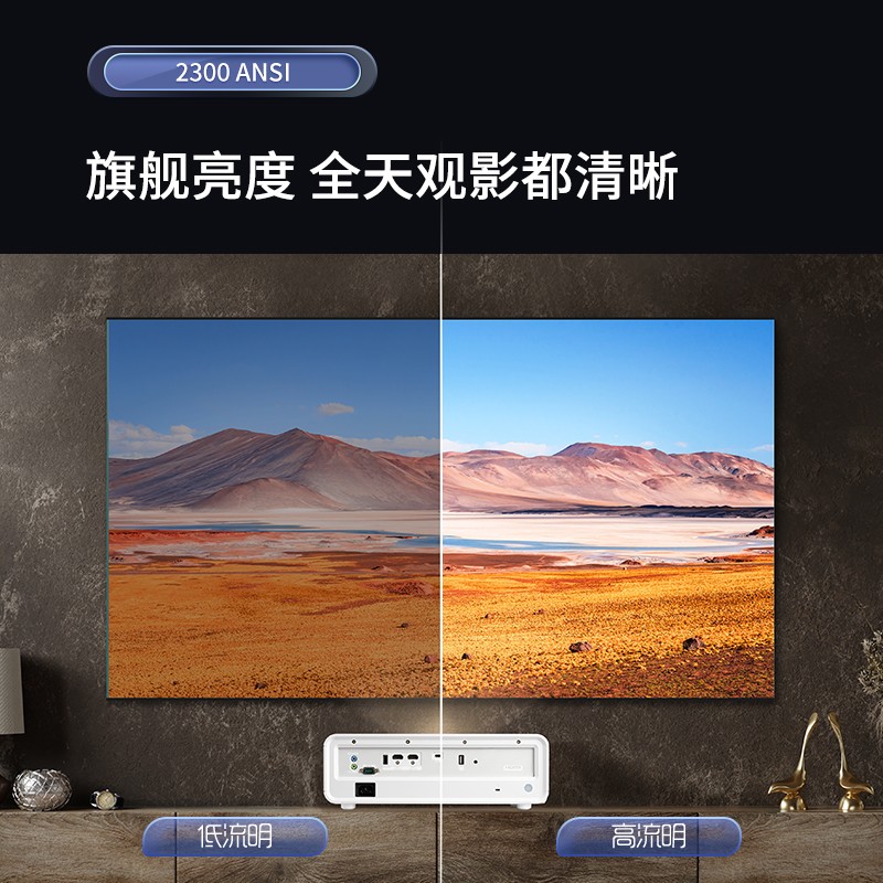 Q20亮度高达2300ANSI流明,采用最新的RGBG四通道LED光源,亮度更高,无惧光线,随时享受剧目观影。3000000:1对比度,呈现细腻影像。同步搭载HDR&HLG,画质更加清晰。搭载12WJBL高阶定制音响,震撼的低音与惊艳的高频表现,还原身临其境的听觉盛宴。