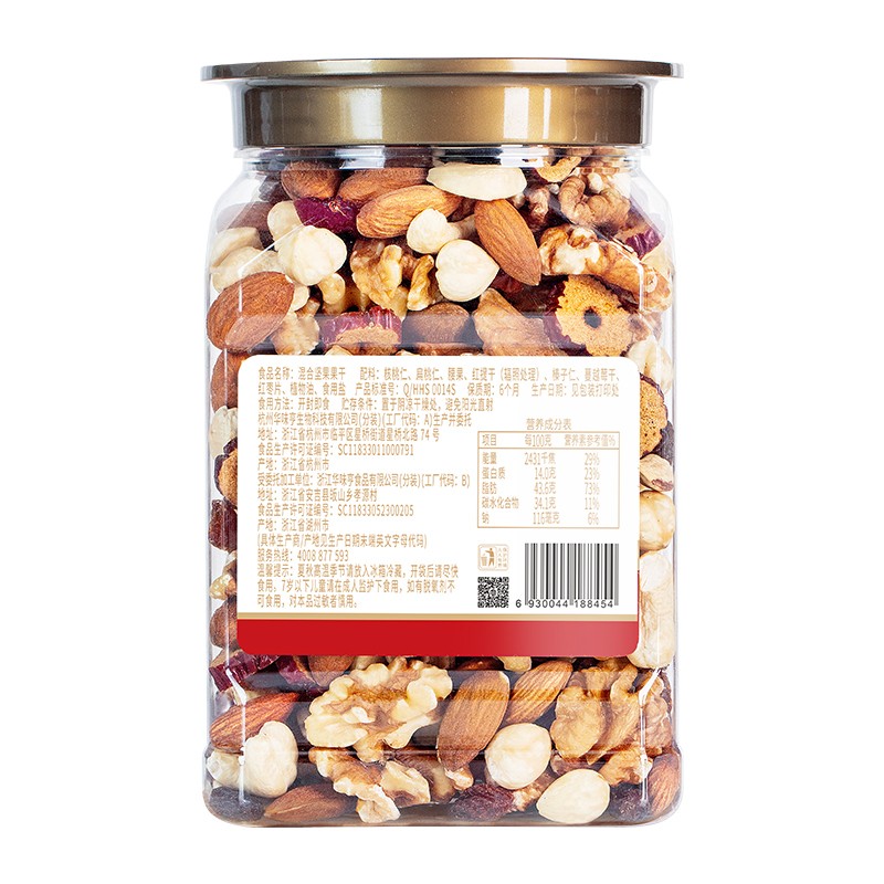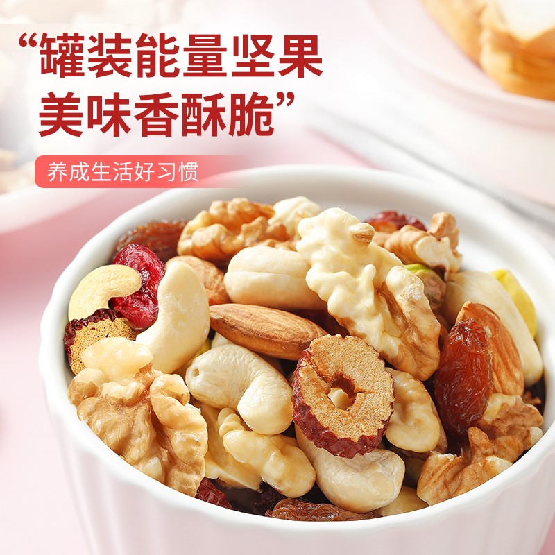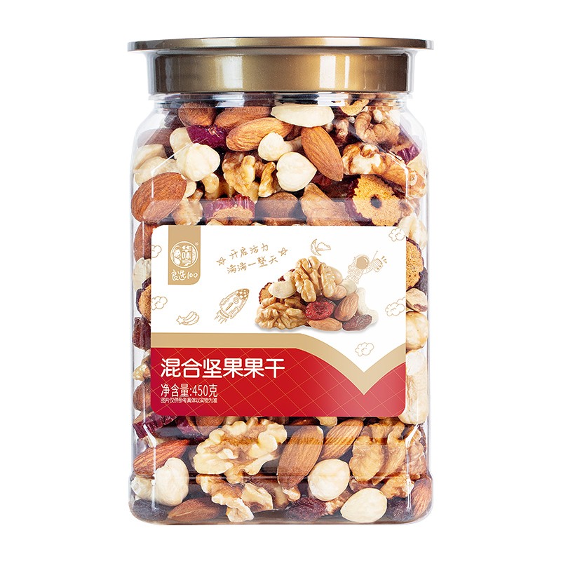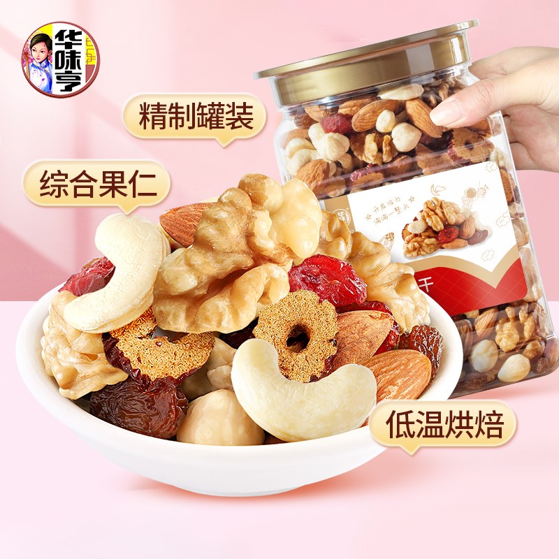 华味亨 每日坚果,精选原料,原果粒粒粒臻选,原自各佳产果区,低温烘培,合理搭配,清脆香甜,好吃不油腻,每天一包,补充每天所需维生素等微量元素,5种坚果,2种果干,原味烘焙,自然醇香,随时随地,开罐即食。规格:450g/罐