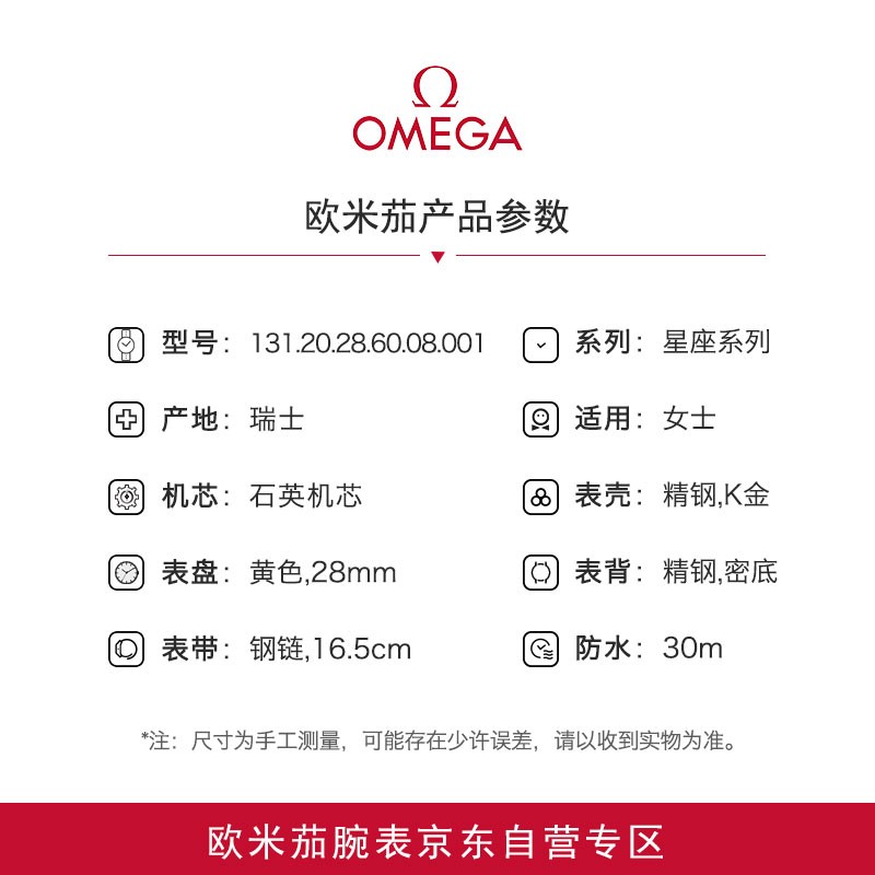 欧米茄星座系列隽永迷人的设计充分体现在表壳上经典的半月形切面、“托爪”以及mono-rang表链。这款28毫米的腕表由黄色18K金与精钢打造,表圈镌刻罗马数字刻度,香槟色表盘呈现丝绸纹理,覆以耐磨损蓝宝石玻璃表镜。指针、欧米茄品牌标识、星座徽标以及小时刻度亦以黄色18K金打造而成。