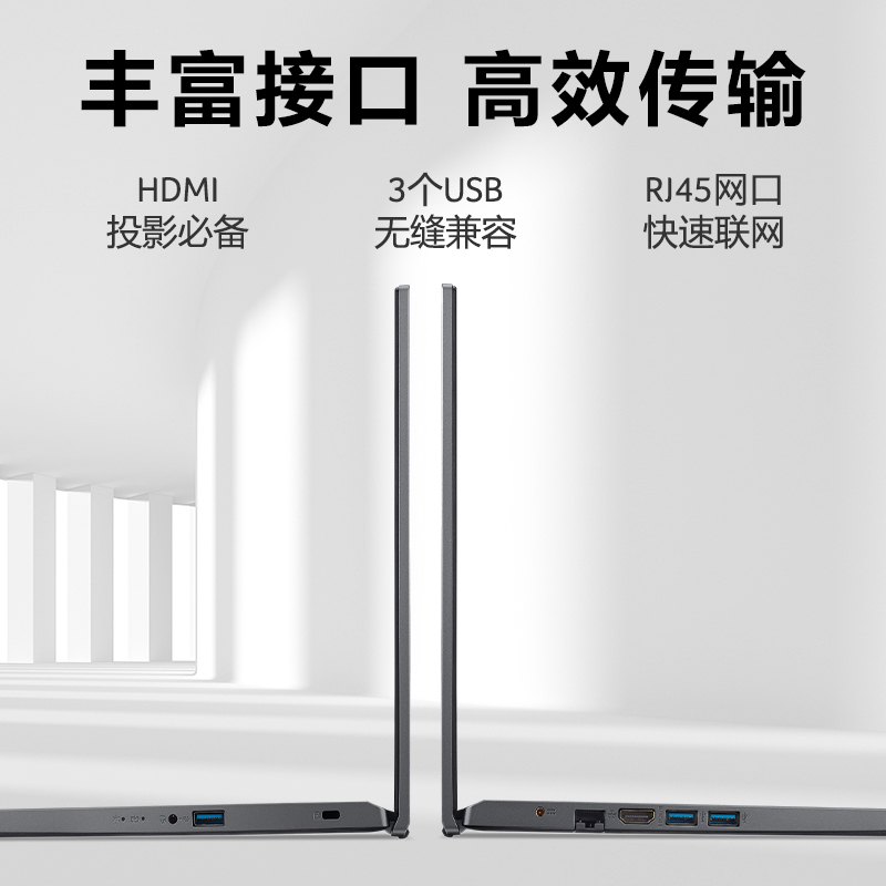 宏碁 墨舞EX215笔记本配置方面采用i5-1235U处理器,10核心12线程,睿频频率至高4.4GHZ,双通道16GB DDR4内存,512GB 固态硬盘。屏幕方面15.6英寸屏幕,标配FHD分辨率。机身重量1.78kg,机身厚度19.9mm,40Whr电池。其他方面采用全尺寸键盘,标配720P摄像头,接口方面HDMI、USB*3、RJ45网口,支持WiFi5,预装office家庭和学生版。