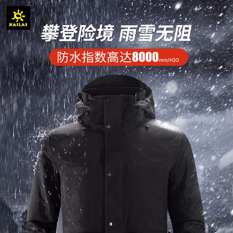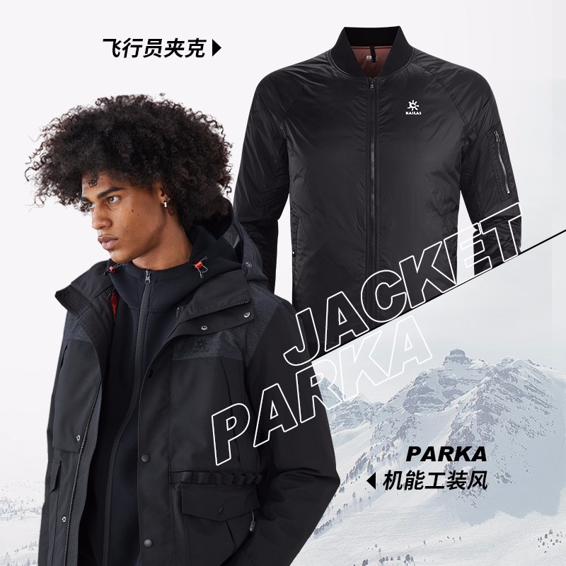 2020年,是国人首登珠峰60周年。KAILAS品牌为致敬珠峰,特推出了此款三合一冲锋衣,将珠峰与攀登元素融入设计中。搭载强防风防水科技,应对骤降的温度及冷冽的风雪。贴心的在衣服拉链处多加一层阻隔带,防止风雨从链条缝隙渗入。内部填充高寒地区鹅绒,含绒量高达80%,蓬松度600+。内胆风格源其美国空军制服,硬朗有型。外套起源于18-19世纪,欧美工人服饰多口袋设计,充满机能感。