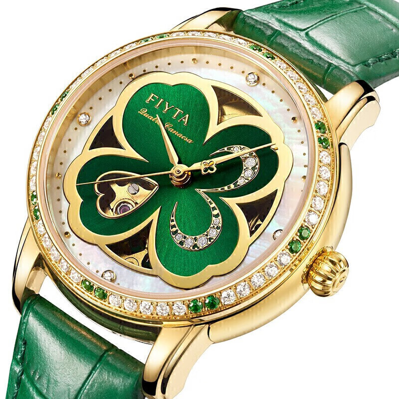 当前的位置: 首页 > 今日值得买 > 飞亚达(FIYTA)手表女 四叶草系列机械表镂空母贝表盘草木绿皮带 时尚商务【节日礼物】LA862025.GNNS