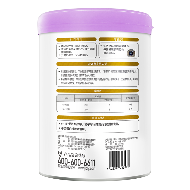 君乐宝成立于1995年,是河北省最大的乳制品加工企业,产品范围包括婴幼儿奶粉、低温酸奶、常温液态奶、牧业四大板块,其中婴幼儿奶粉在2014年正式开始生产,旗下有至臻、乐铂、恬适、乐纯、旗帜、乐臻、小小鲁班等系列,这款至臻系列主打的卖点是添加了优量的CPP(酪蛋白磷酸肽),每100g含有35mgCPP,能有效地促进人体对钙、铁、锌等微量元素的吸收和利用,有利于宝宝骨骼发育,还添加了OPO结构油脂,帮助宝宝更好的吸收和消化营养,减少便秘的发生,配方中还含有3大类营养元素,5种核苷酸促进宝宝生长发育,3重益生元呵护宝宝肠道健康,α-乳清蛋白小分子更易吸收宝宝肚肚舒服。