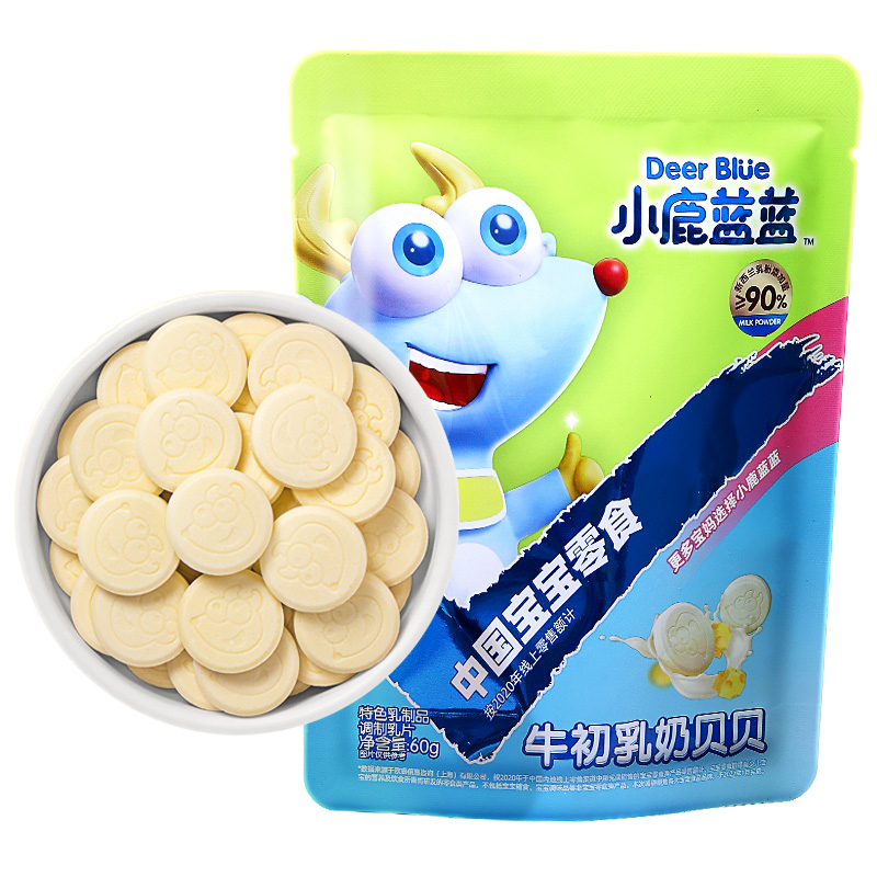 小鹿蓝蓝定位为“三只松鼠旗下互联网婴童食品专业品牌”,为中国家庭提供一站式的科学喂养方案。小鹿蓝蓝旗下产品包含辅食核桃粉、溶豆、海苔、奶酪、饼干等多款食品,产品均不含香精、防腐剂、色素、甜味剂,很好地契合了当下年轻父母对健康营养、食品安全的核心诉求。这款Deer Blue 小鹿蓝蓝 牛初乳奶贝贝采用木糖醇代替白砂糖,呵护宝宝的牙齿,用奶贝贝代替高糖零食,养成健康饮食习惯,远离糖依赖,矫正宝宝味觉。特别添加牛初乳粉,帮助提高宝宝抵抗力,富含钙、维生素和矿物质,口感细腻不沾牙,酥脆十六,质地清爽。不添加白砂糖、香精、色素、奶精和植脂末,宝宝吃得更安心。