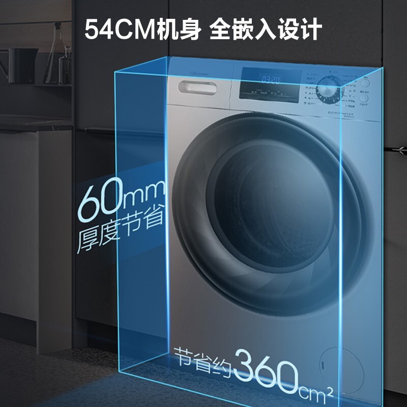 Hisense 海信 暖男 S2 HD100DES142F 洗烘一体滚筒洗衣机 (香槟金、10KG),54CM纤薄机身,洗净比高达1.08,15种洗涤程序,11种洗烘程序+2大除菌程序,巴氏除菌,杀菌效果好。BLDC电机,烘干容量为6公斤,最高转速1400转。