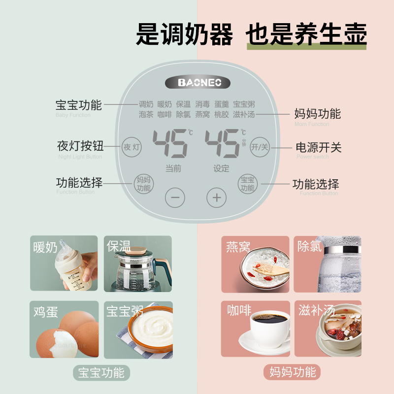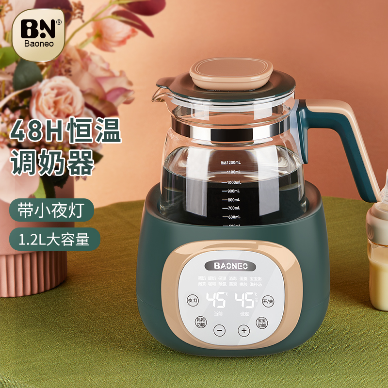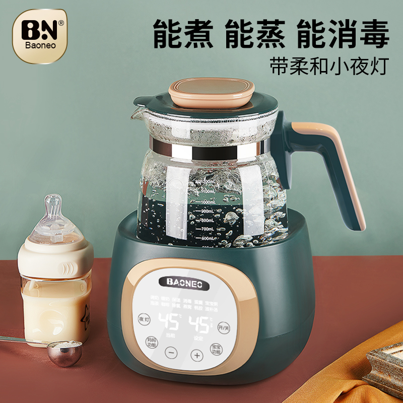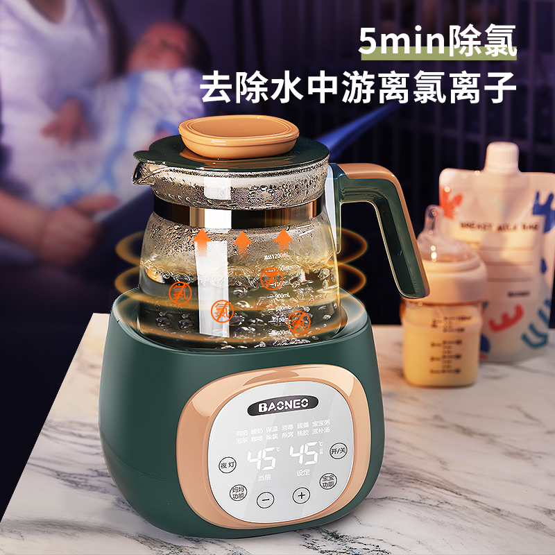 贝能(Baoneo)这款调奶器,选用高硼硅玻璃壶体,耐温差且不易爆裂;316不锈钢发热盘,加热无异味。水烧开后可一键进行5分钟的除氯,减少水中有害物质,使水质纯净。机器运行时仅20分贝,低音不打扰他人。1.2L大容量设计,可满足多人饮水需求。