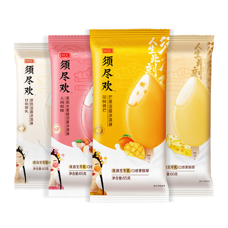 须尽欢冰淇淋,诞生灵感源于中国诗词品牌致力于以国韵为骨,以文化为根,为您带来更高品质,更有国韵的尽欢体验品牌倡导“人生此刻须尽欢”人生没有标准答案每一个“此刻”,都是最好的时刻。规格:须尽欢(人间悦桃+花悦香芒+甘饴厚乳+午后芝味)活菌冰淇淋(65g*2支+60g*2支)/盒。