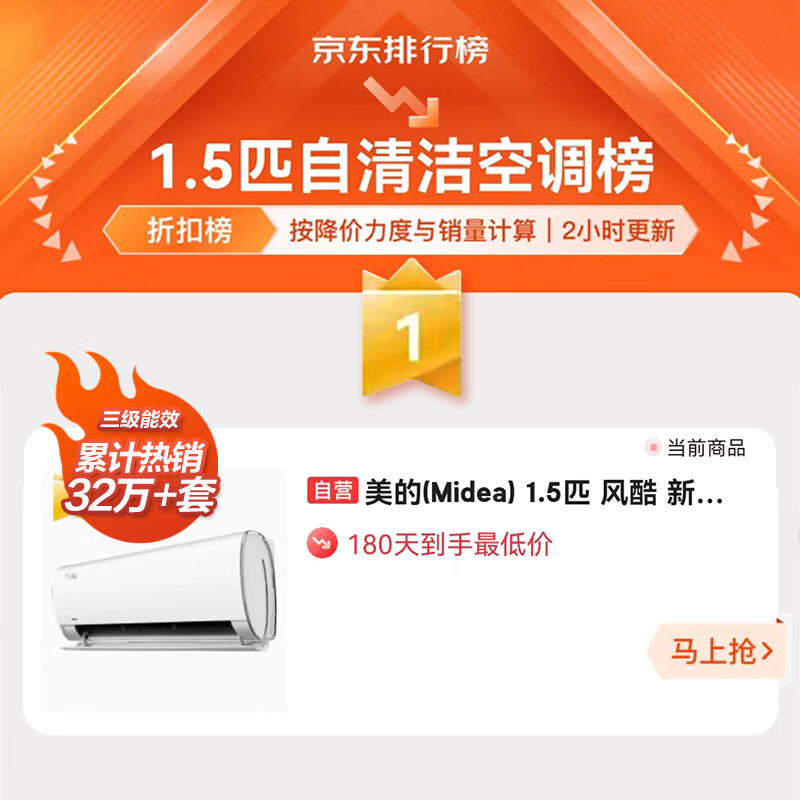 当前的位置: 首页 > 今日值得买 > 美的(Midea) 1.5匹 风酷 新三级能效 变频冷暖 自清洁 壁挂式 空调挂机 京东小家智能家电 KFR-35GW/N8XHC3