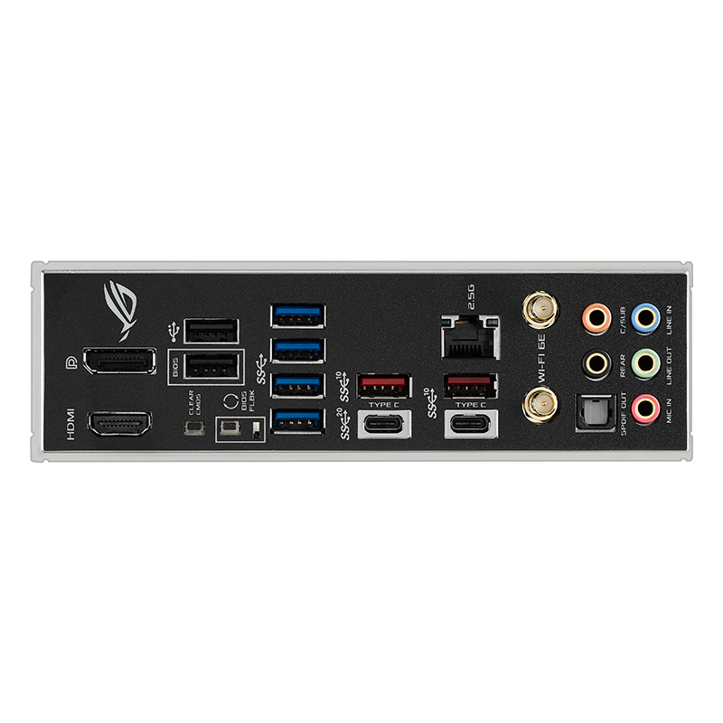 ROG STRIX Z690-F GAMING WIFI 属于“猛禽”系列,拥有16+1相供电,4条DDR5-6400MHz内存槽(最大128GB),有2个M.2,6个SATA3.0(6Gbps)。扩展槽包括:1条PCI-Express5.0(x16),1条PCI-Express3.0(x4 / x16)和PCI-Express3.0(x1),尾部也提供2.5G千兆网卡和Wi-Fi 6E无线网卡+蓝牙5.2。