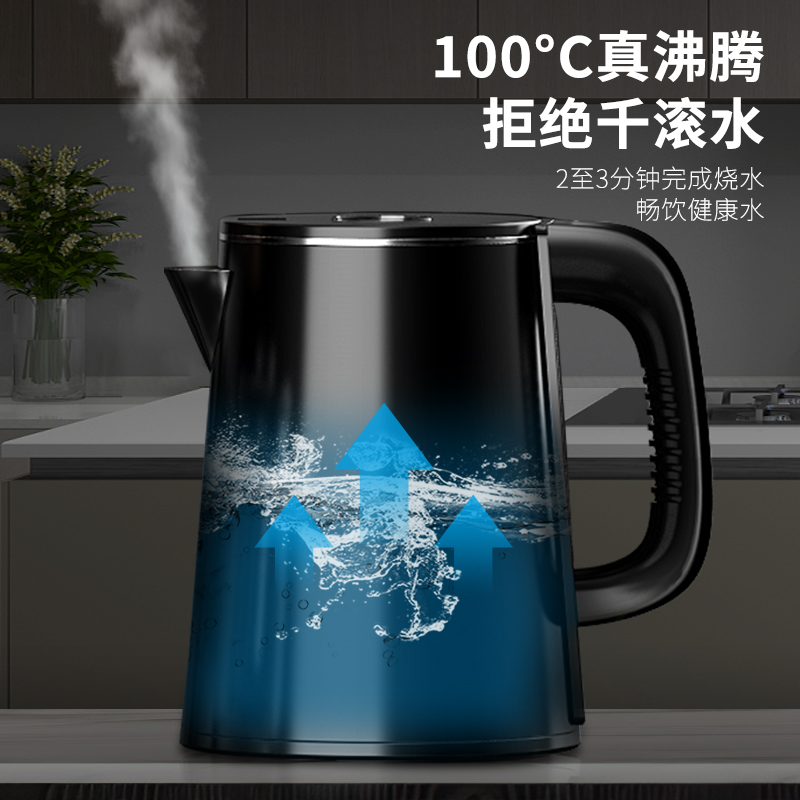 大屏实时显温,温度尽在掌握中,烧水温度实时显示满足您的,不同温度需求,隐藏式双出水口设计,拒绝平庸颠覆传统,烧水壶无需开盖上,加水设计一键加热,100°C真沸腾,拒绝千滚水,2至3分钟完成烧水,畅饮健康水,13档调温设计,温度随心选,40-100°C满足生活各种,喝水需求,全面屏灵敏触控,可湿手操作,四大功能一目了然操作简单,便于家中老人使用。