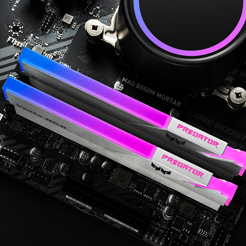 Vesta系列内存RGB光效现已进行升级优化,灯珠亮度更高、色彩更纯净,磨砂雾面导光条底部特别采用锯齿设计,灯珠光效自然发散视觉效果更细膩,内部集成的8个独立灯区支持1680万自定义色彩兼容主流板厂灯控软件,用户可随心打造专属主机RGB灯效 。