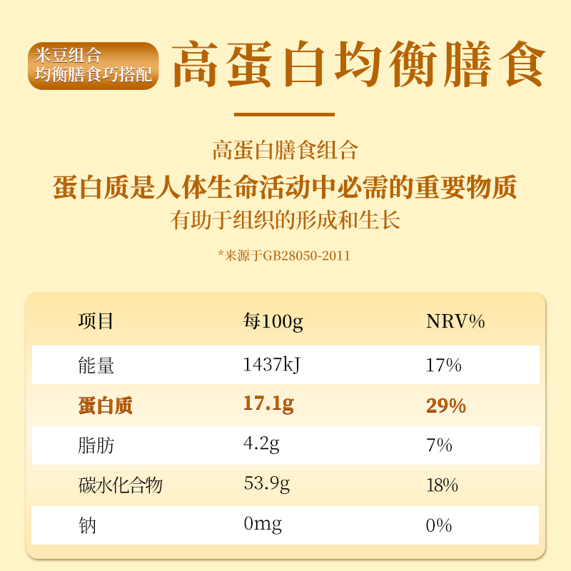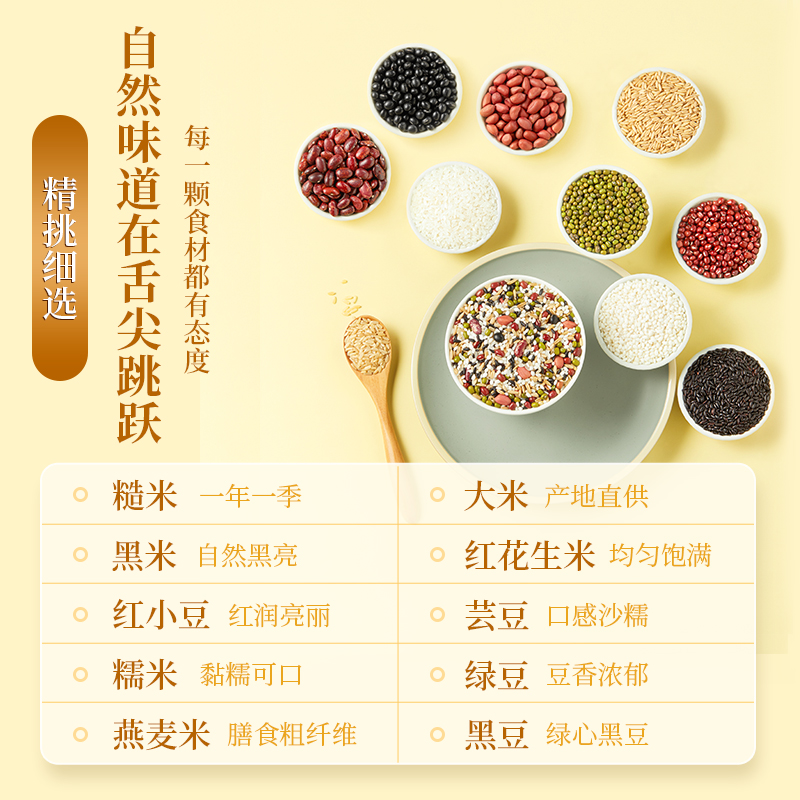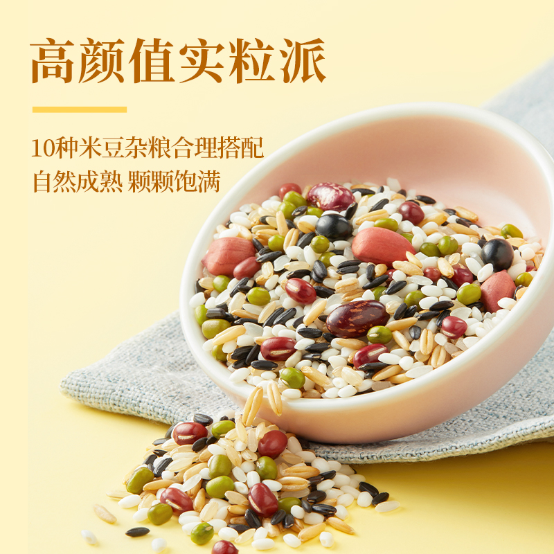十月稻田(SHI YUE DAO TIAN)这款十谷米,选用糯米、糙米、大米、燕麦米、芸豆等配料混合而成。每100g中蛋白质含量17.1g、脂肪含量4.2g。颗粒饱满完整,质地硬脆。袋装包装,便于储存。保质期为12个月,请置于阴凉通风干燥处保存。