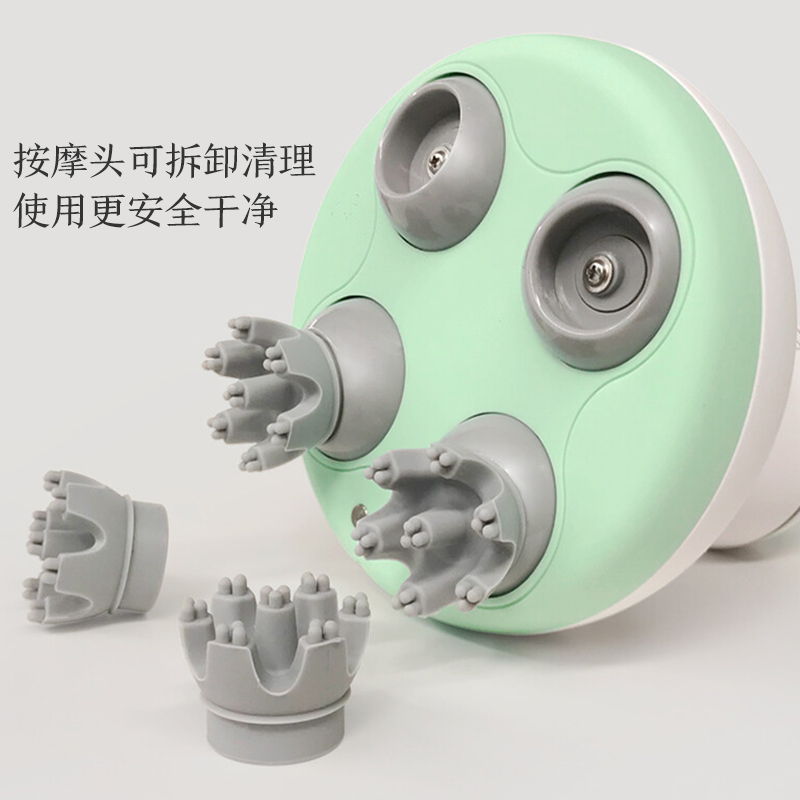 揉捏按摩,可拆卸清洗,人体工学,6级防水,一键操控,柔性按摩头,无线便携,持久耐用,4轮回转,3D仿真人手按摩,2个方向同时按摩,28个抓手,接触点多,触头浅口设计不压迫,6种按摩手法,真正放松头皮。双向环绕揉捏放松头部,双向环绕设计,按摩时也可以任意切换,双向循环更利于深度按摩放松。