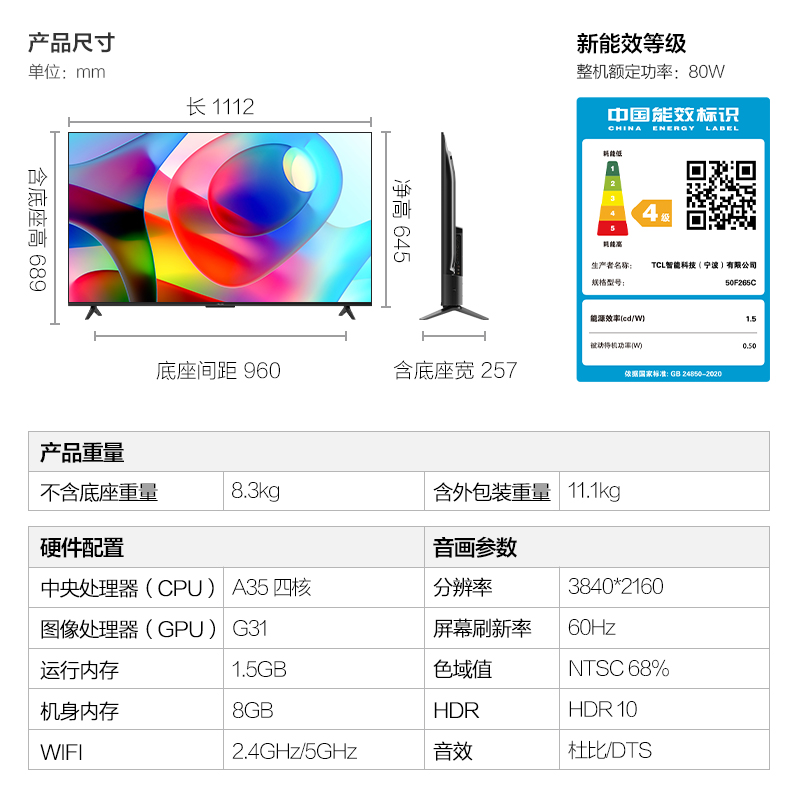 金属全面屏,双频WIFI,远场语音,蓝牙5.1,4K HDR 支持HDR10高动态范围解码,深邃暗处与耀眼高光, 所有画面细节一网打尽。打造沉浸的家庭影院,全面屏大屏电视,4K超高清画质、10.7亿全彩屏, 杜比+DTS震撼音质,在家同样享受沉浸影院体验。