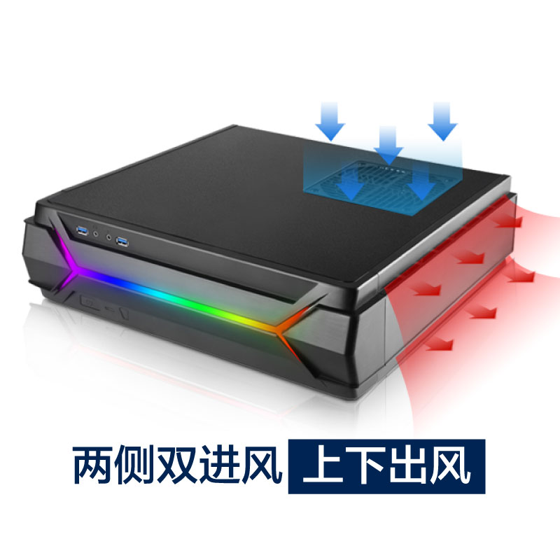 小乌鸦3,ARGB版 ITX机箱,最大的特点是在前面板融入了ARGB可编程灯光元素,自带控制器,也支持主板调节灯光,幻彩灯光很酷。此外,机箱内部的利用率依然很高,不仅能够兼容标准ATX电源,大多数显卡也可以容纳。