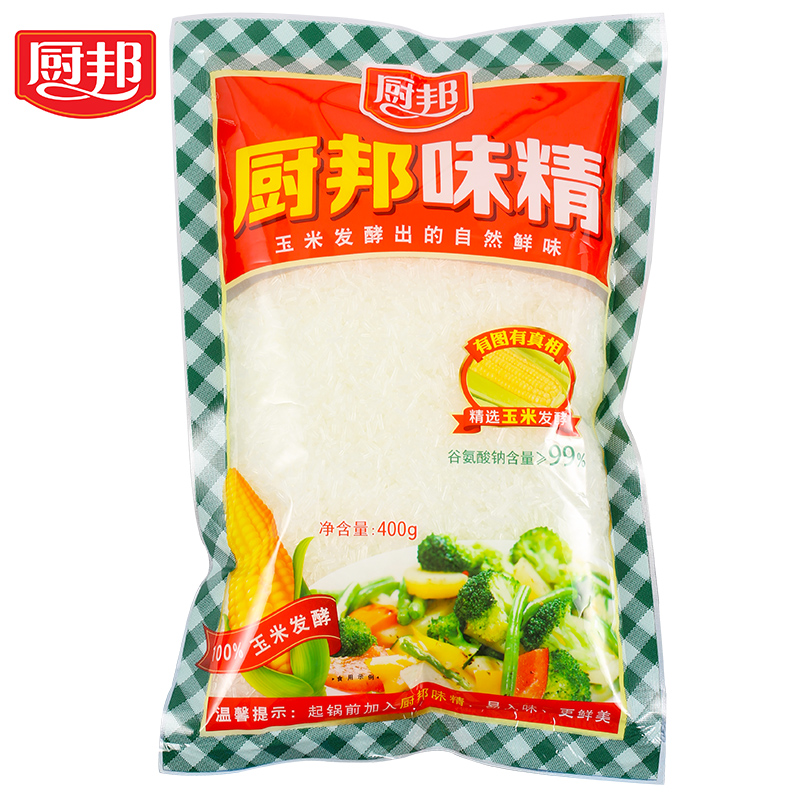 厨邦这款味精,属一级调味品。以玉米为原料,经玉米发酵酿造,提纯出天然谷氨酸钠。味精色泽洁白,颗粒细小均匀,溶解迅速。适合用于煲汤、焖炖、凉拌等佐料,可增香提味。袋装包装,便于存放。保质期为3年。请密封置于阴凉干燥处保存。