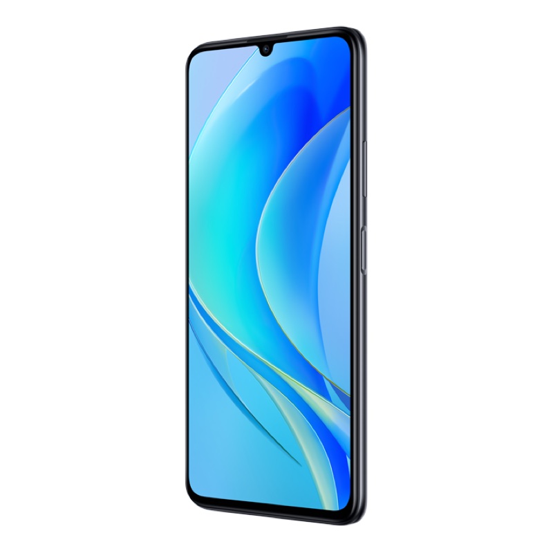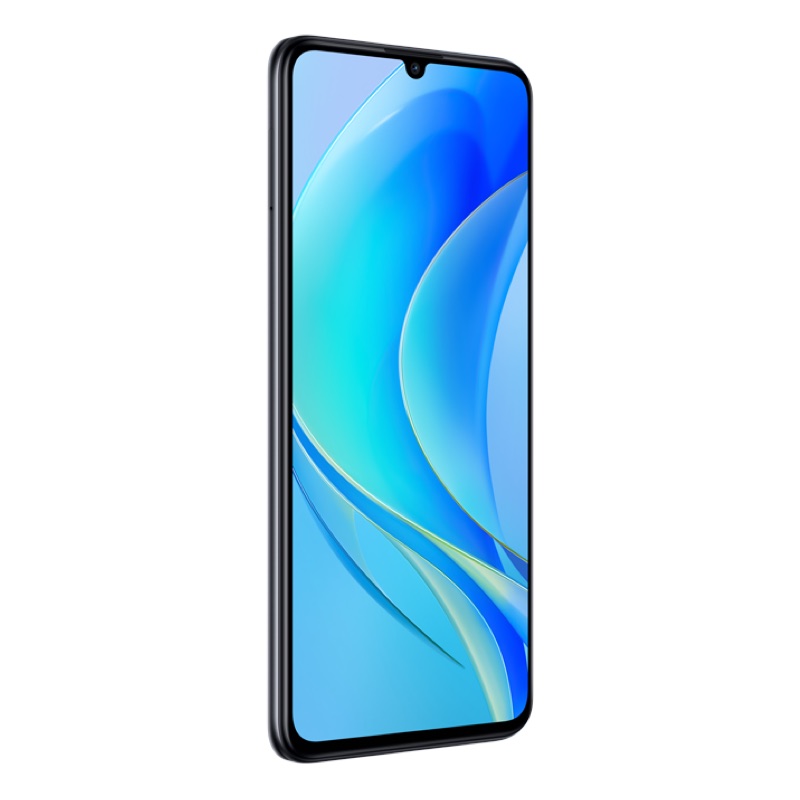 华为畅享50手机,外观采用圆润线条设计结合双曲仿玻璃机身,厚约8.98mm,重199g,保留3.5mm耳机接口,提供冰晶蓝,贝母白,幻夜黑三种配色。