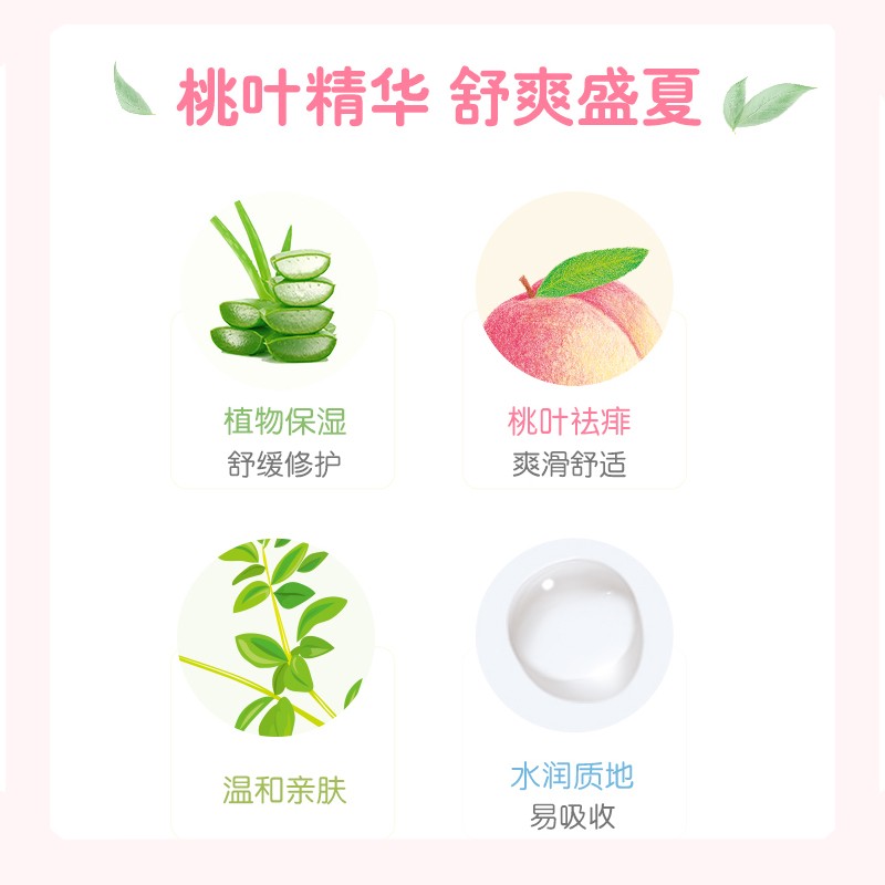 这款贝亲桃叶爽身水桃叶精华成分满满,涂开时没有味道,之后会不经意的飘来淡淡的水蜜桃味。对宝宝热痱、尿布疹、湿疹、红屁屁有都快速修复作用。除防治痱子以外还有镇静、消炎晒后皮肤,预防皮肤粗糙的作用。
