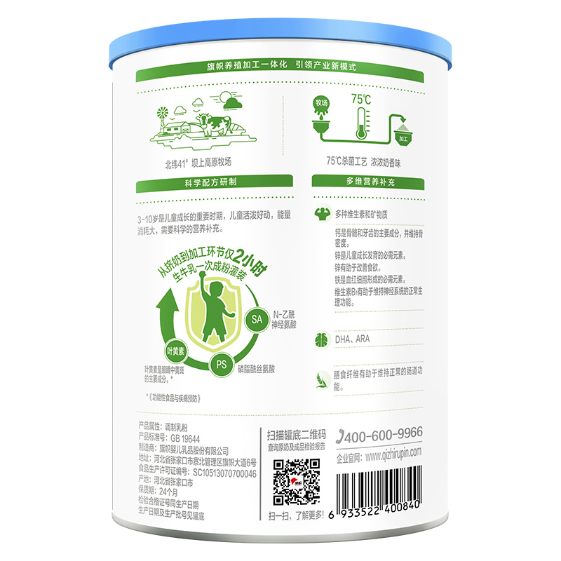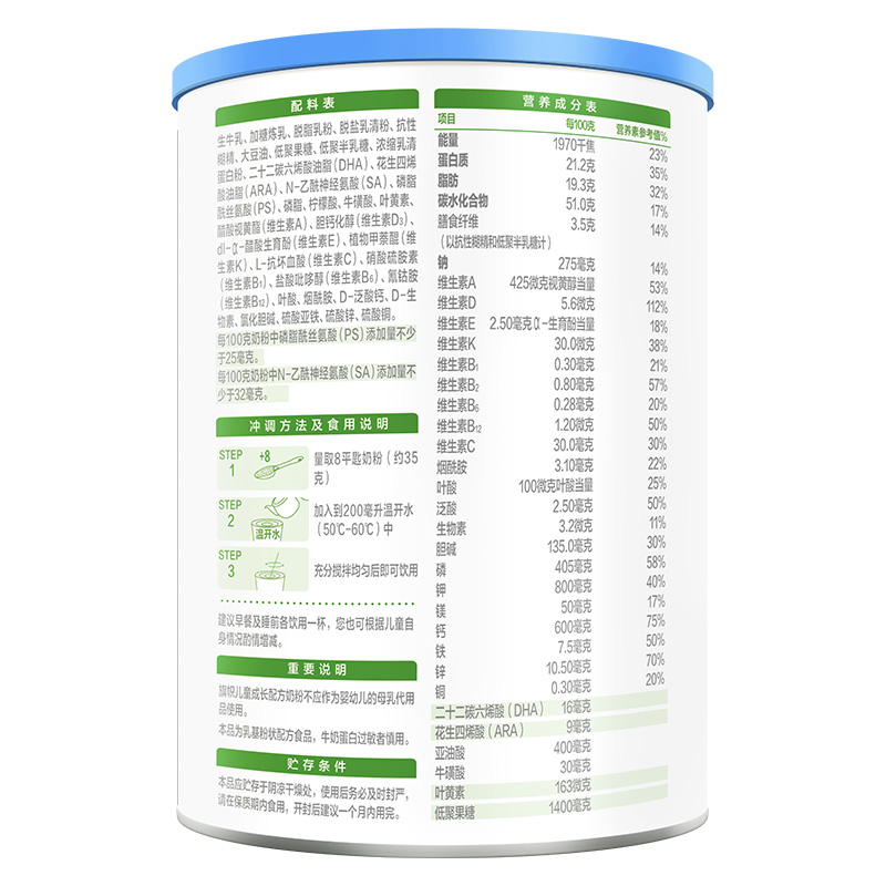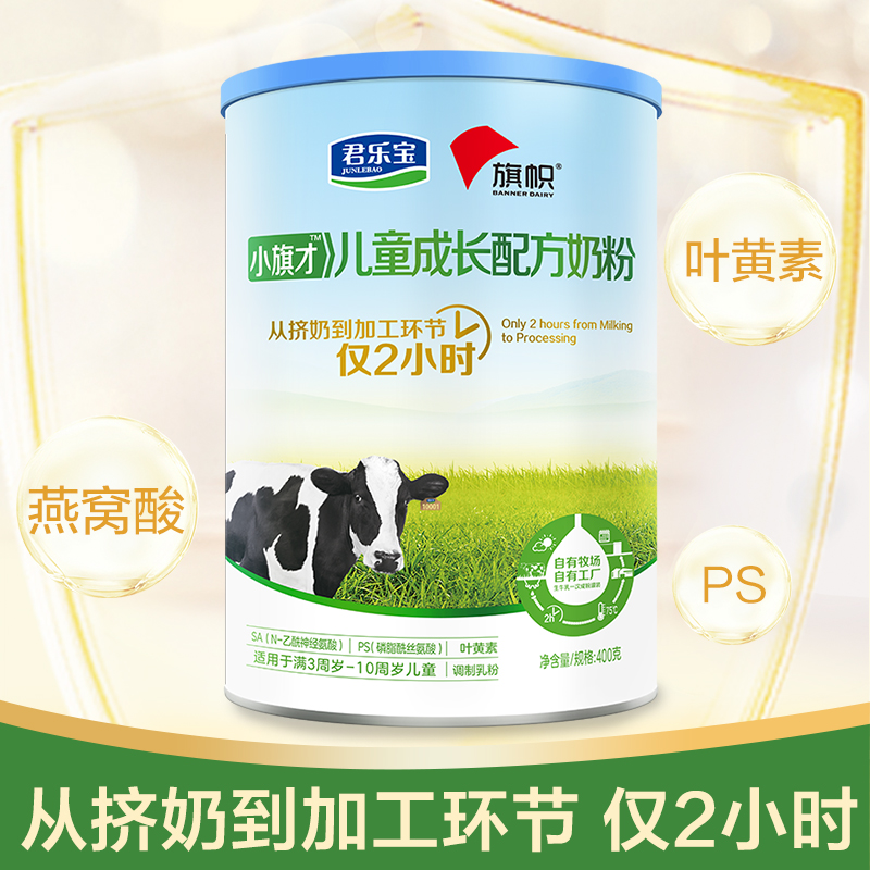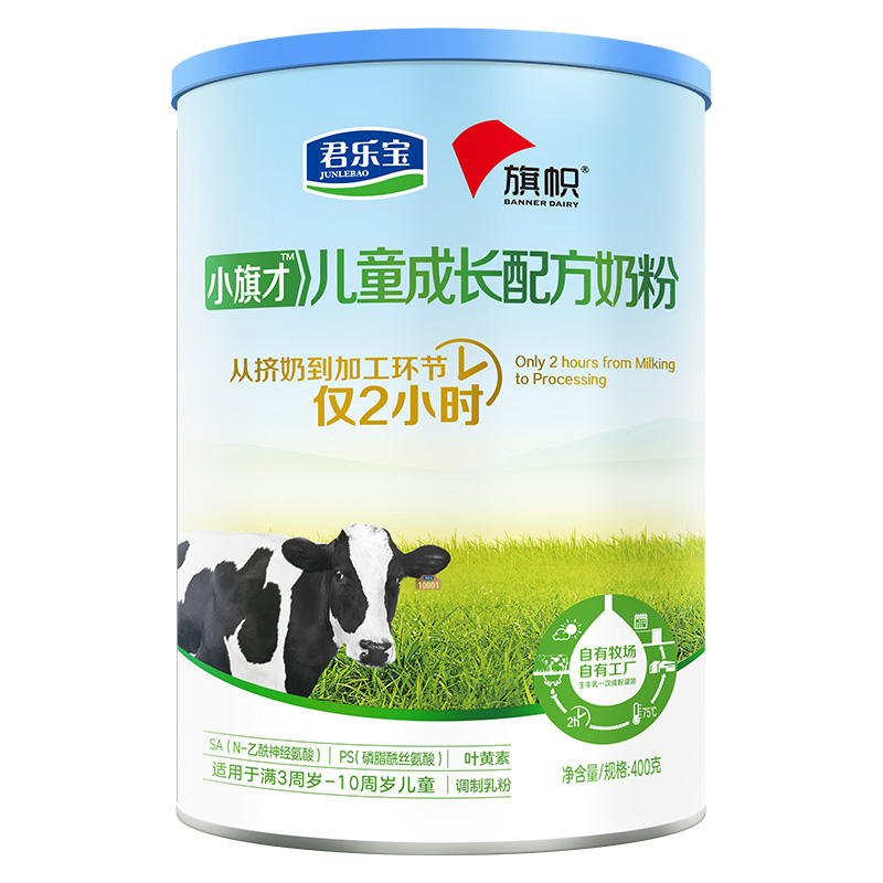 旗帜(BANNER DAIRY)推出的这款配方奶粉,选用北纬41°高原牧场奶源。富含多种营养成分,其中MFGM乳脂球膜,能促进脑部发育,调理肠胃和提高免疫力;DHA有助于脑部和视网膜的发育与功能的维持;叶黄素可增进和保护视力。