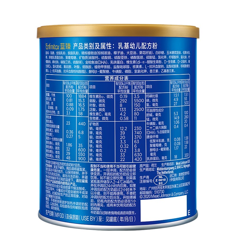 蓝臻,是美赞臣集团旗下的的高端奶粉,因奶源优质和20倍乳铁蛋白的优点,价位稍高。市面上有国行版、港版、美版,国行版蓝臻的奶源来自荷兰。对比美赞臣其他款奶粉,蓝臻以高含量的20倍乳铁蛋白为宝宝的健康成长保驾护航,每100g奶粉乳铁蛋白含量高达330mg,冲调后600mg/L,贴合宝宝天生需求。含有独特的短链+长链独特益生元组合,能够全面保护宝宝的肠道,增强宝宝自护力。此外,乳铁蛋白还与蓝臻中独特的益生元组合相互结合,配合PDX+GOS益菌素组合,双重助力宝宝的健康,让宝宝消化吸收更好,排便软且轻松。MFGM与DHA双重脑动力营养组合,可提升2倍脑洞力,研究发现:MFGM(乳脂球膜)对于婴幼儿的神经发育、代谢调节、抗感染等都具有重要作用,DHA就是咱们俗称的脑黄金,是大脑和视网膜的重要构成成分,对宝宝的智力和视力发展相当重要,这二者联手,双重功效支持脑细胞连接,帮助大脑发育。