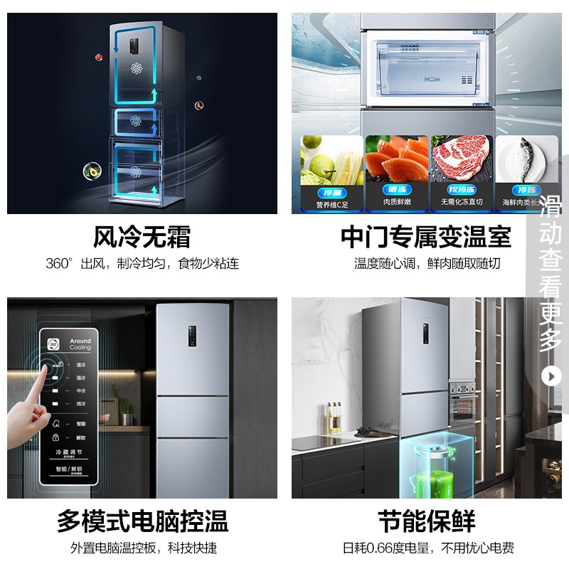 当前的位置: 首页 > 今日值得买 > 容声(Ronshen)218升家用三门小冰箱风冷无霜中门宽幅变温草本保鲜电脑控温冰箱 送货入户 银色