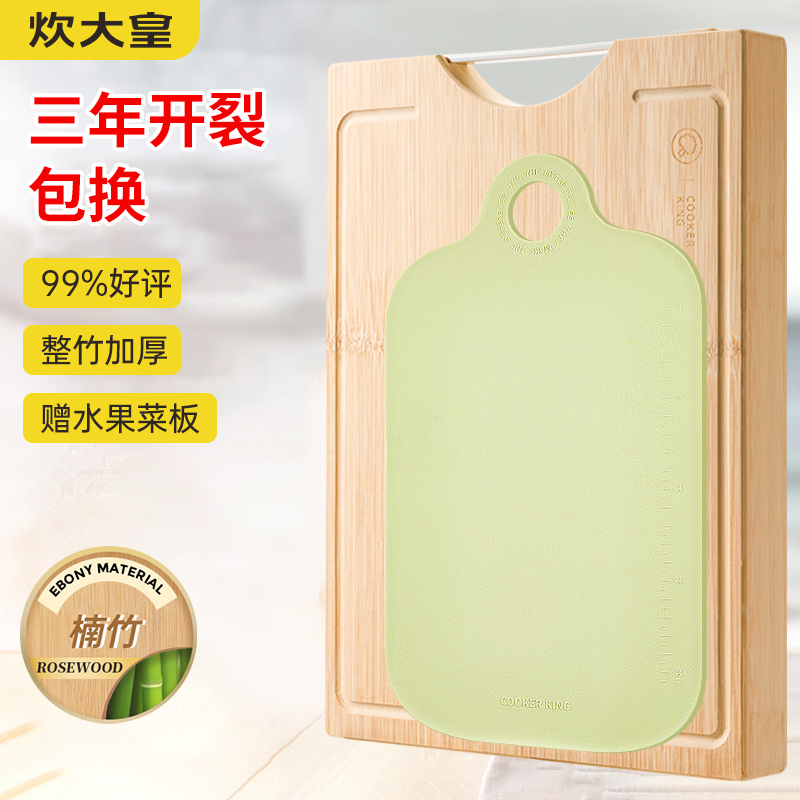 当前的位置: 首页 > 今日值得买 > 炊大皇 天然整竹菜板 3cm加厚 双面分切带刻度可悬挂家用案板砧板和面切菜板38*28*3cm+水果菜板 CB38B