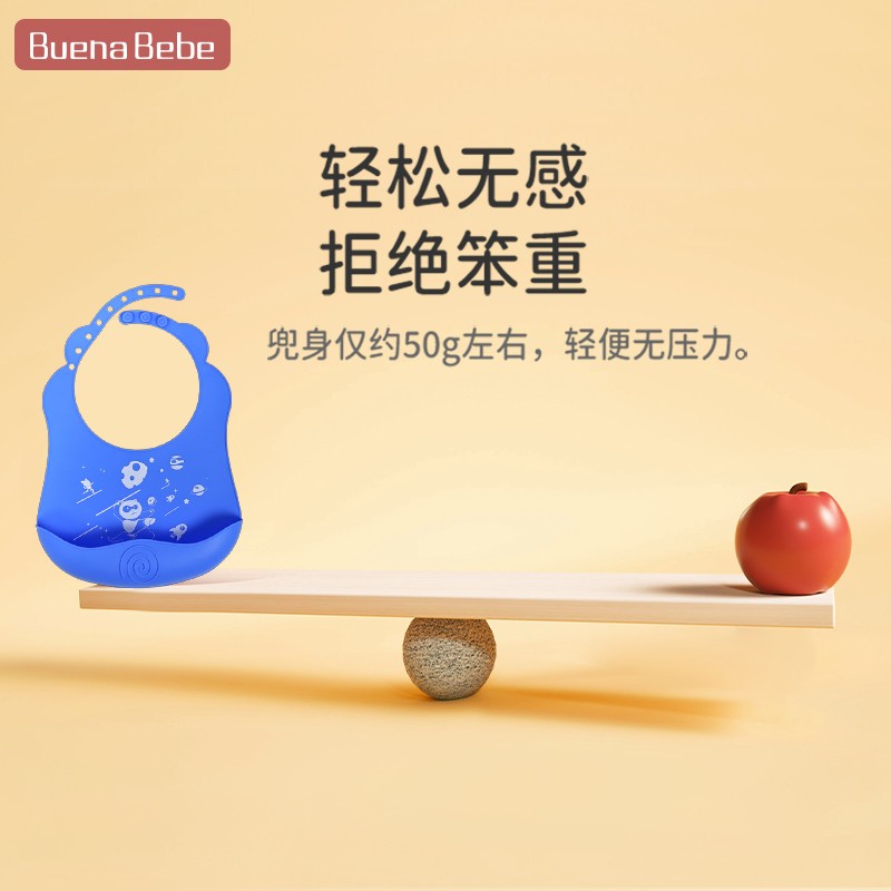 严选奶嘴级别铂金硅胶,符合入口级别标准,安全啃咬很安心。兜身仅约50g左右,轻便无压力。柔软贴合宝宝身躯,底部防漏凹槽,避免弄脏宝宝衣物。