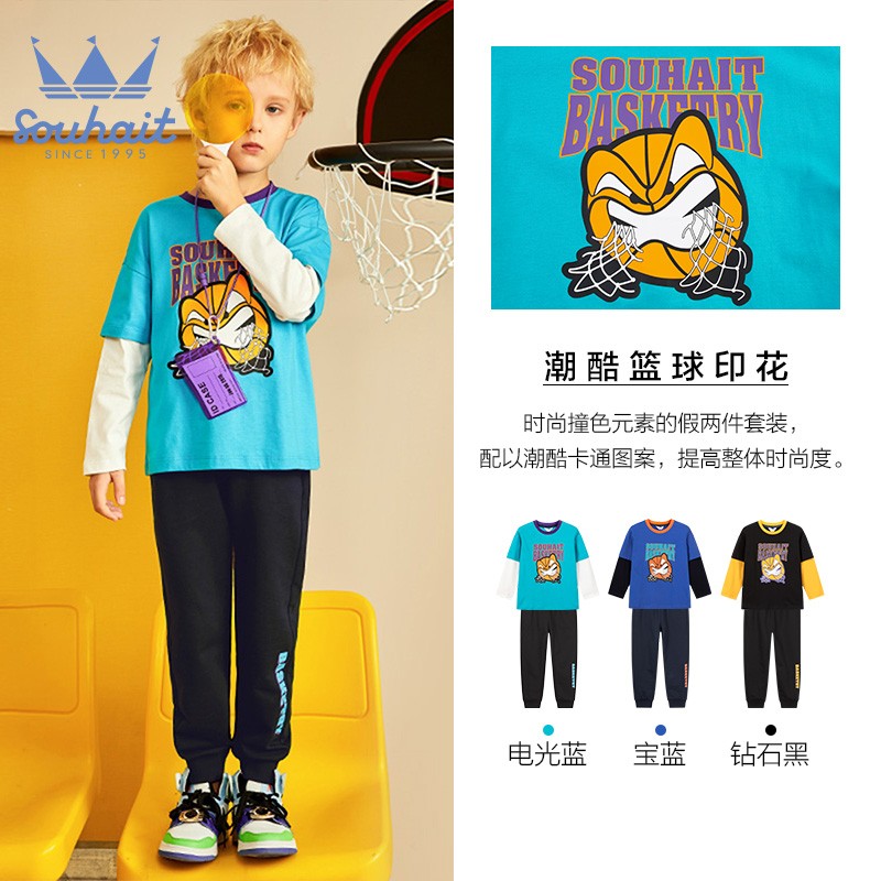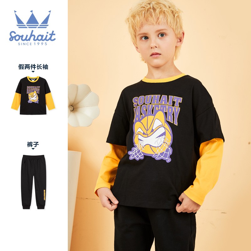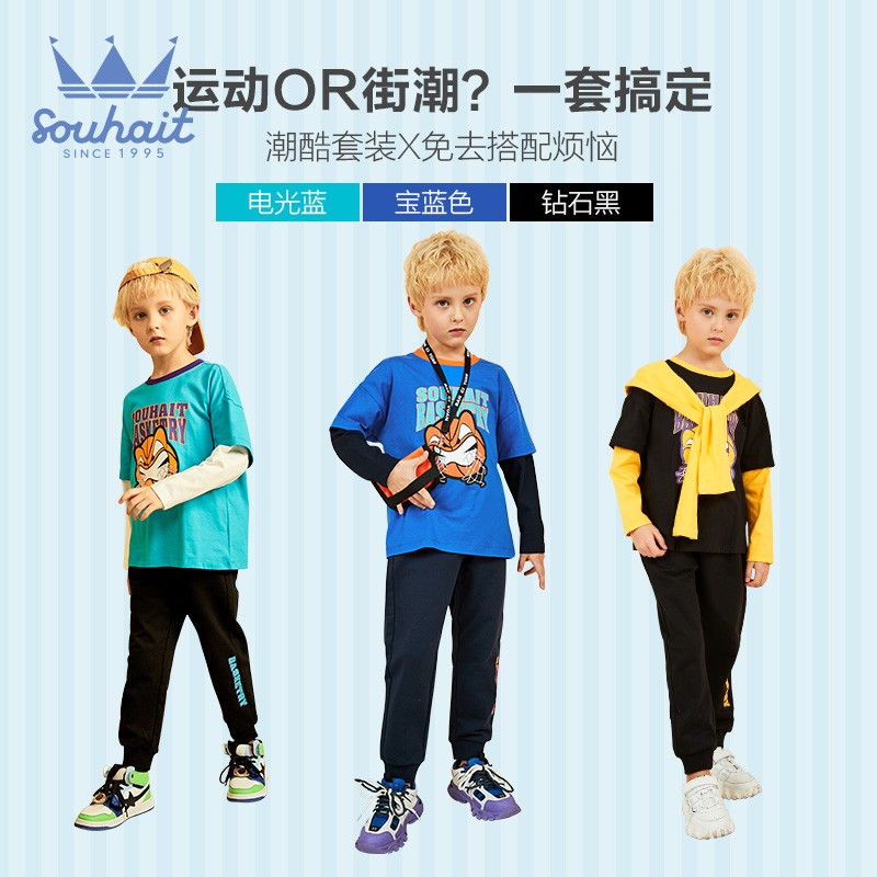 Souhait 水孩儿 儿童套装,采用舒适面料,柔软舒适,运动百搭,个性抢眼,透气性好,时尚帅气,潮流醒目,活力动感,休闲青春,居家外出,随心穿搭。