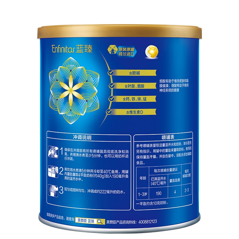 蓝臻,是美赞臣集团旗下的的高端奶粉,因奶源优质和20倍乳铁蛋白的优点,价位稍高。市面上有国行版、港版、美版,国行版蓝臻的奶源来自荷兰。对比美赞臣其他款奶粉,蓝臻以高含量的20倍乳铁蛋白为宝宝的健康成长保驾护航,每100g奶粉乳铁蛋白含量高达330mg,冲调后600mg/L,贴合宝宝天生需求。含有独特的短链+长链独特益生元组合,能够全面保护宝宝的肠道,增强宝宝自护力。此外,乳铁蛋白还与蓝臻中独特的益生元组合相互结合,配合PDX+GOS益菌素组合,双重助力宝宝的健康,让宝宝消化吸收更好,排便软且轻松。MFGM与DHA双重脑动力营养组合,可提升2倍脑洞力,研究发现:MFGM(乳脂球膜)对于婴幼儿的神经发育、代谢调节、抗感染等都具有重要作用,DHA就是咱们俗称的脑黄金,是大脑和视网膜的重要构成成分,对宝宝的智力和视力发展相当重要,这二者联手,双重功效支持脑细胞连接,帮助大脑发育。