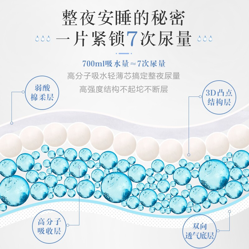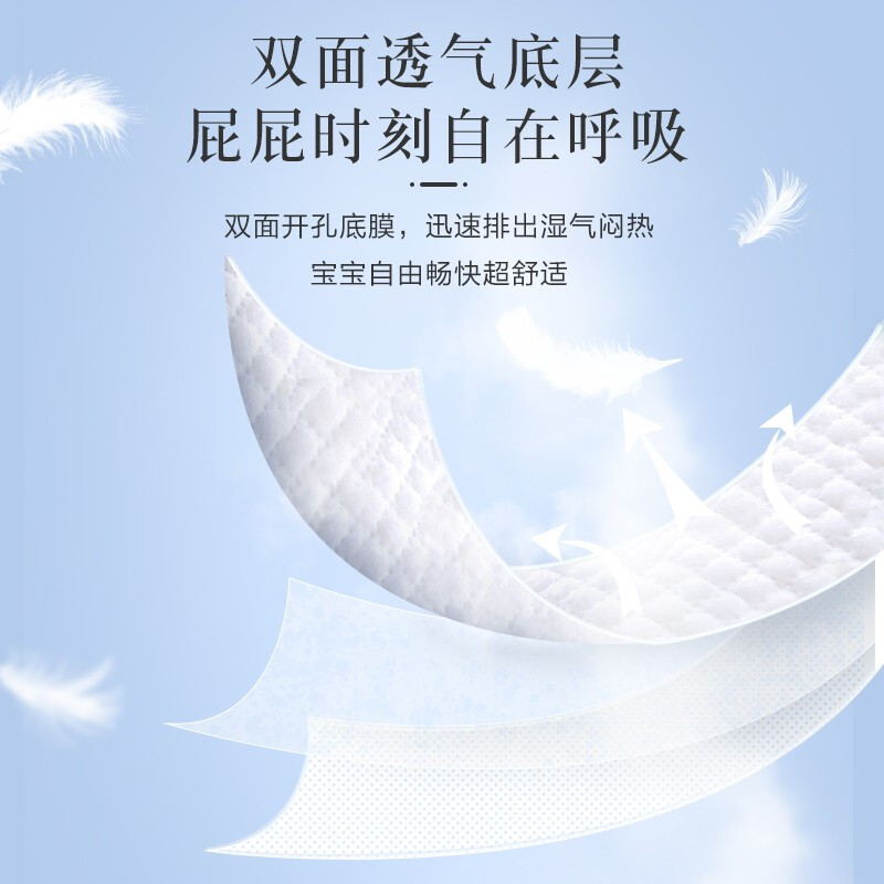 此款婴儿纸尿裤,0添加亲肤全棉外表层,如棉花初绽的软,10倍回吸力,屁屁持久干爽,提取植萃精华,营造弱酸环境,各别红屁屁,海量吸收一片约700ml大吸量,大品牌,获得欧盟多重环保认证,宽幅弹力腰围+高柔软护围+灵敏尿显+圆角魔术贴,柔然贴身,宝宝穿着更舒适。
