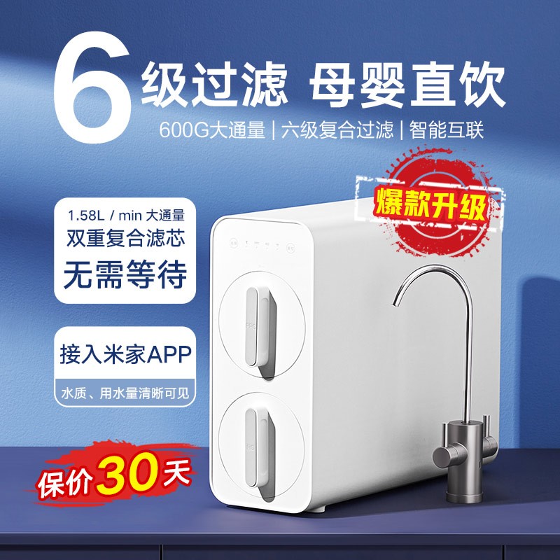 当前的位置: 首页 > 今日值得买 > 小米净水器家用净水机H600G 双芯六级过滤 无罐直饮水 RO反渗透 双出水龙头 米家APP智能互联